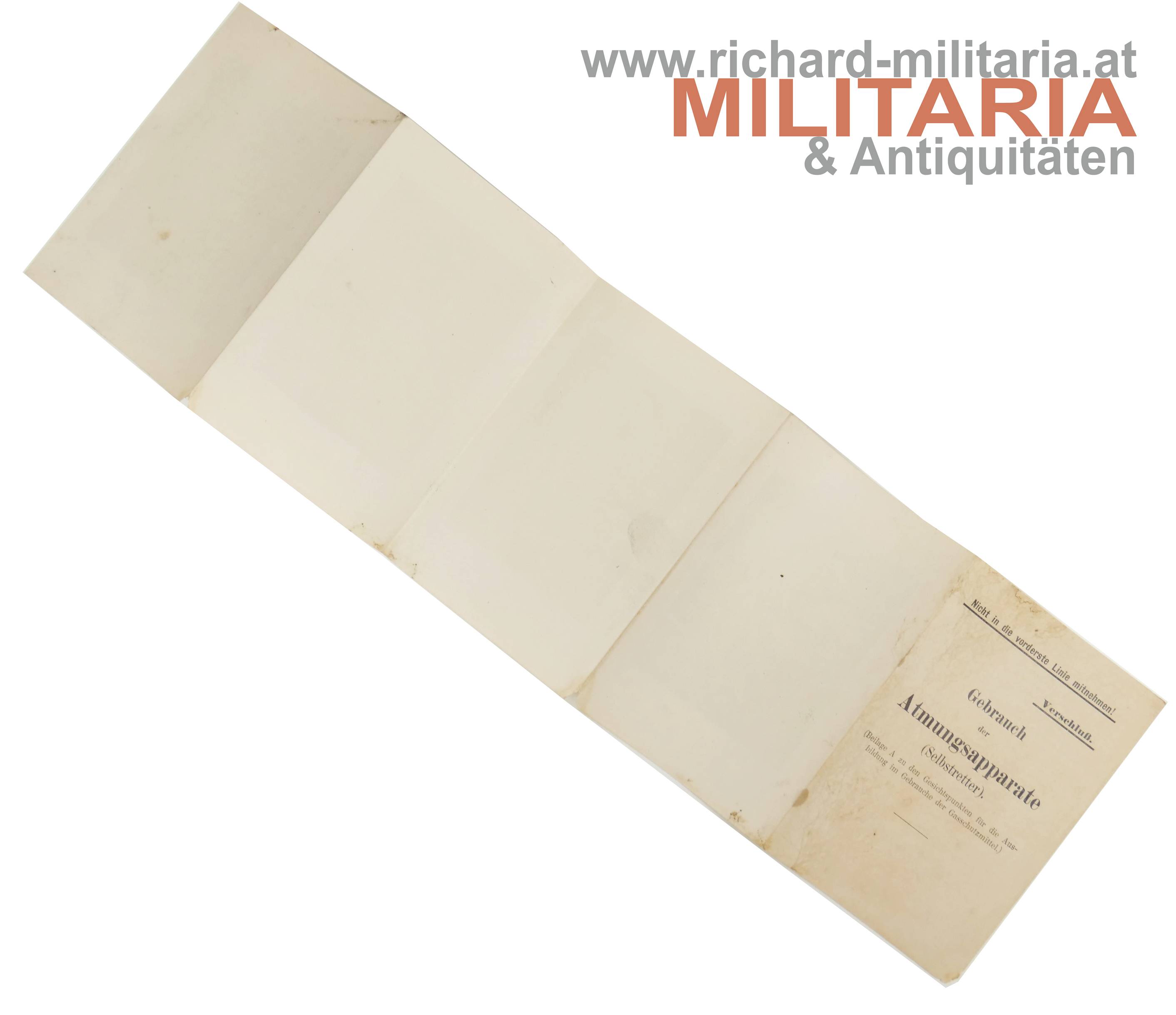 k.u.k. Dienstvorschrift "Gebrauch der Atmungsapparate (Selbstretter)"; zum Aufklappen; Format gefaltet 10 x 14,7 cm;