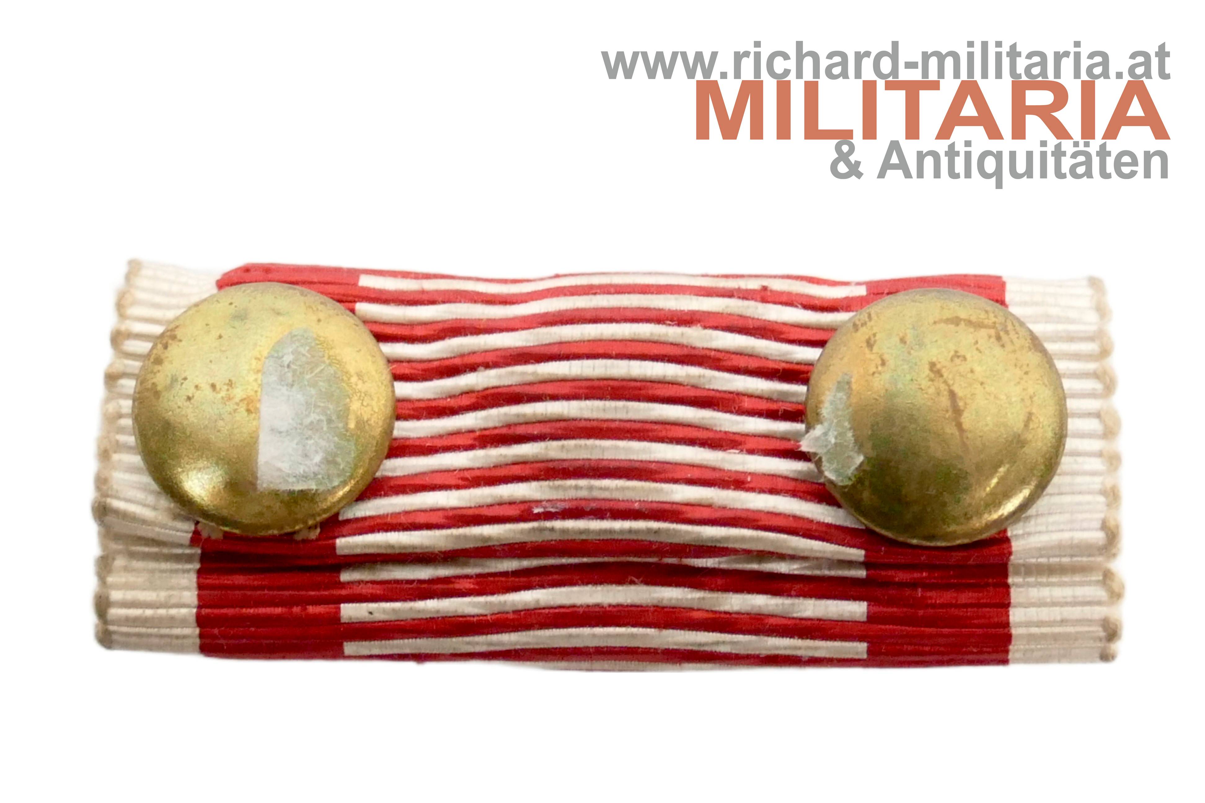 k.u.k. Einzelbandspange mit eingestickten Krone - Bronzene Militärverdienstmedaille am Bande des Militärverdienstkreuzes; Krone aus Goldfaden aufgestickt (!); Spange mit zwei Druckknopfverschlüssen; dazu lose Schwerter aus vergoldetem Tombak - Splinte fehlen;