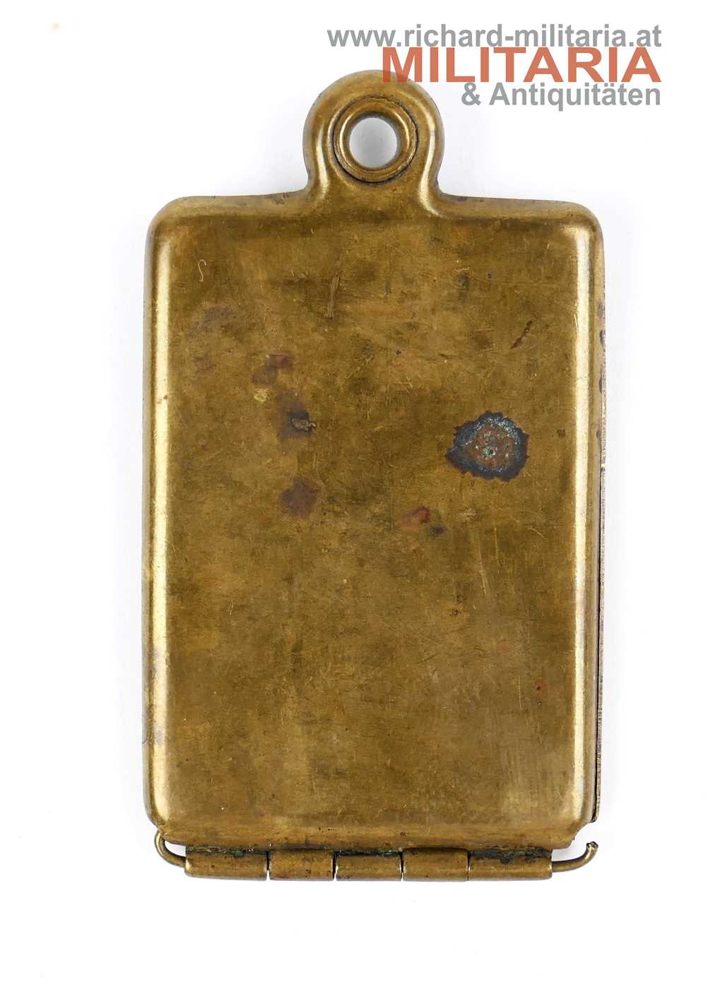 k.u.k. Erkennungsmarke aus Messing - innen ist der Name Schneider Leop.(old) und I.R. 34 1914/32 eingeritzt; Papiereinlage fehlt.