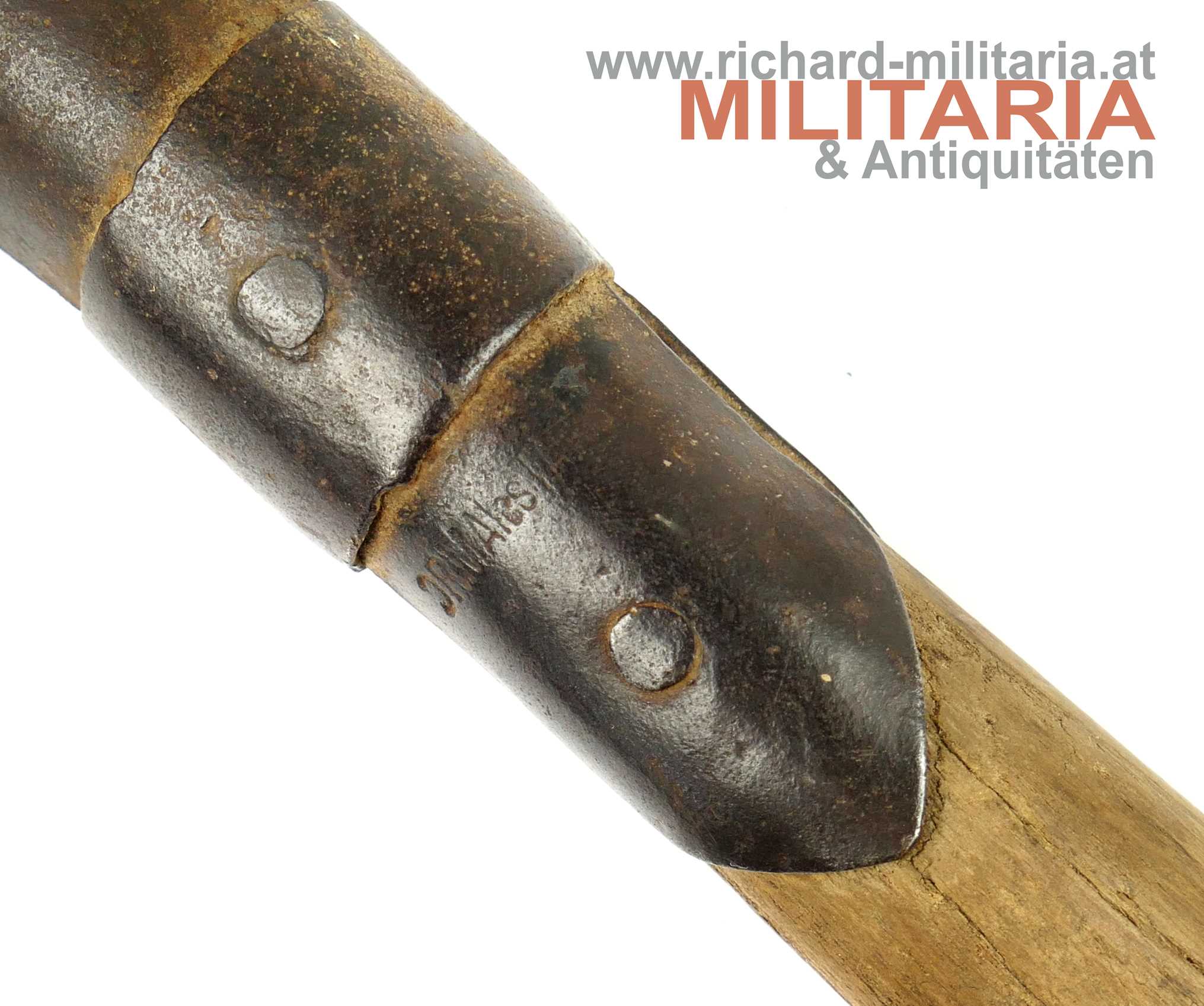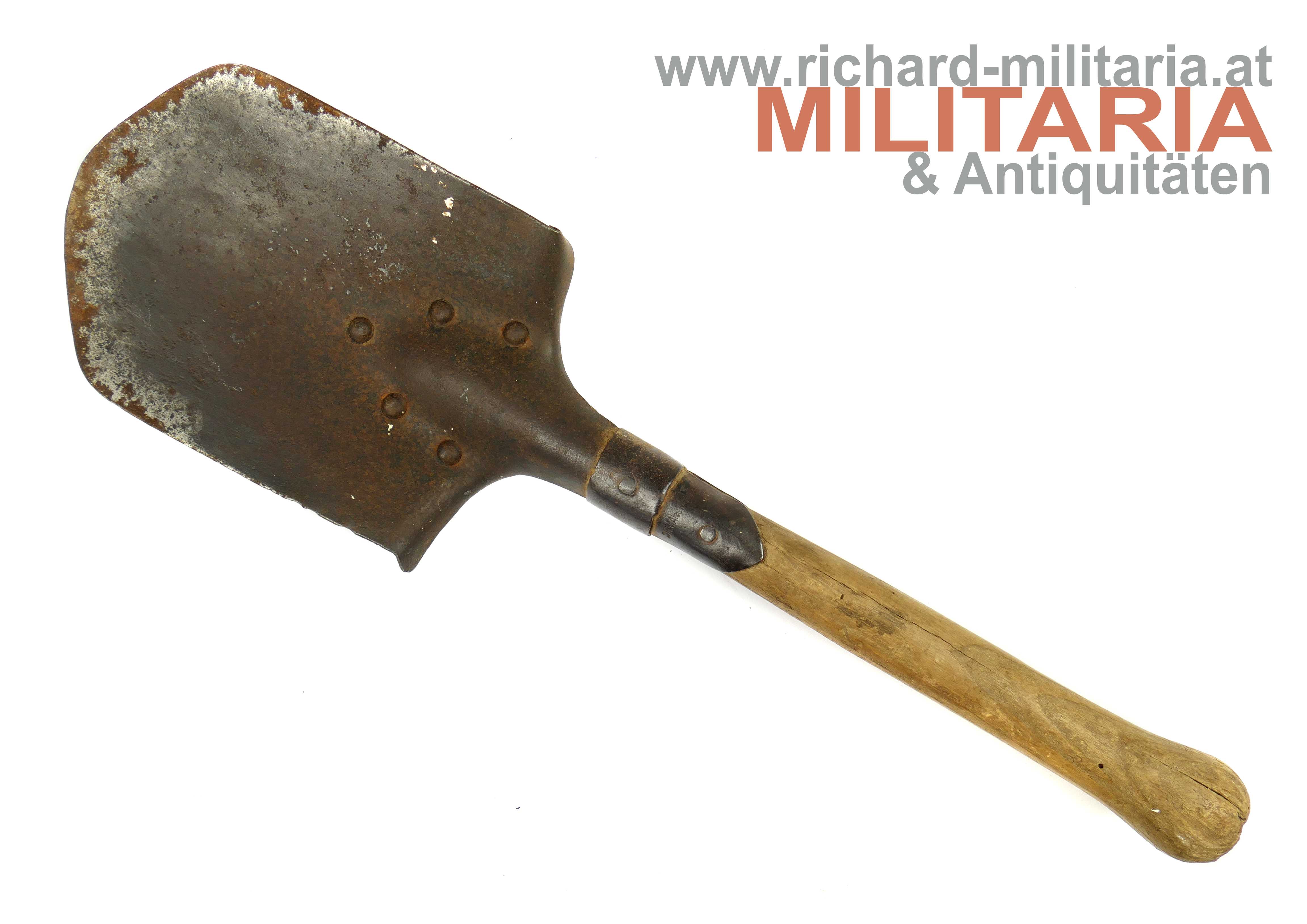 k.u.k. Feldspaten, unleserlicher Hersteller am Stielansatz; originaler Holzstiel, wenige Wurmlöcher - Holz noch fest (!)