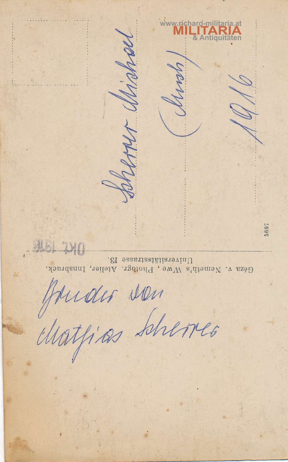 k.u.k. Foto - beschriftet mit: Scherrer Michael (Much) 1916 - Bruder von Mathias Scherrer / gestempelt Okt.1916