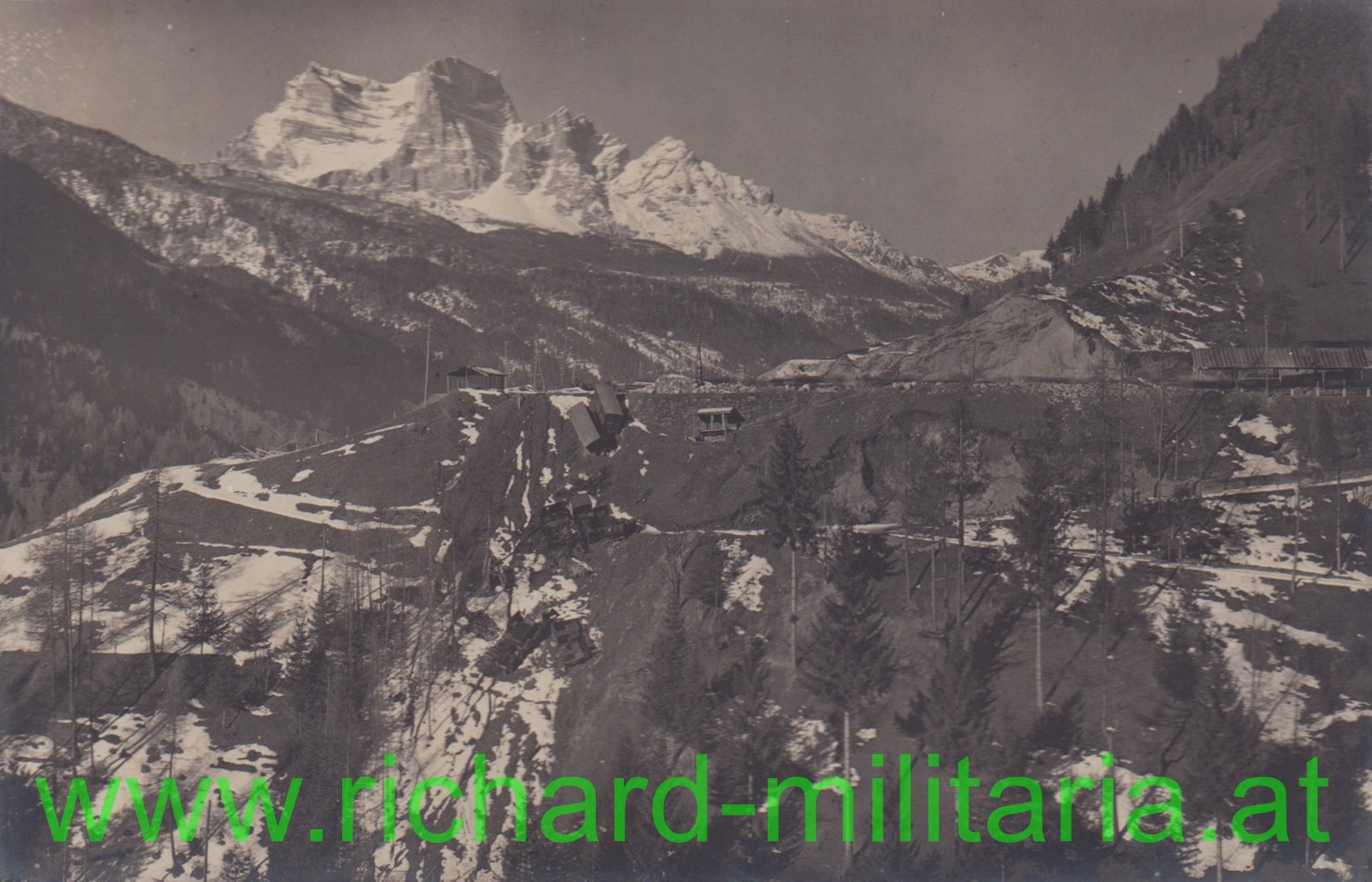 Produktinformationen "k.u.k. Foto Mte. Rombon - abgestürzte Eisenbahn-Züge und Wagons (!)"