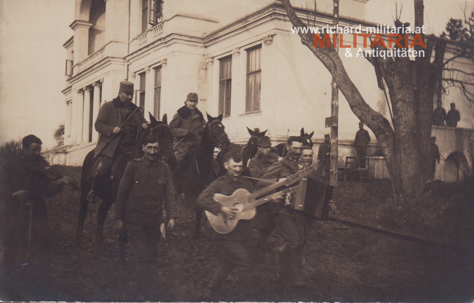 k.u.k. Foto "Offizierseinzug mit Musikanten - k.k. Reit. Schützenregiment"