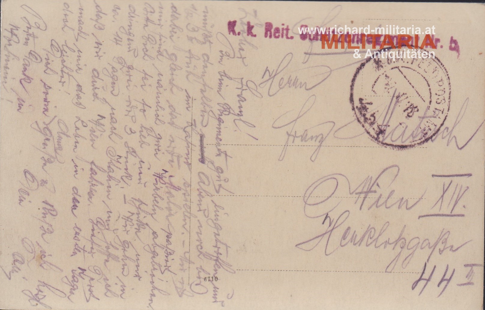 k.u.k. Foto in Postkartenformat; gelaufen mit Truppenstempel;