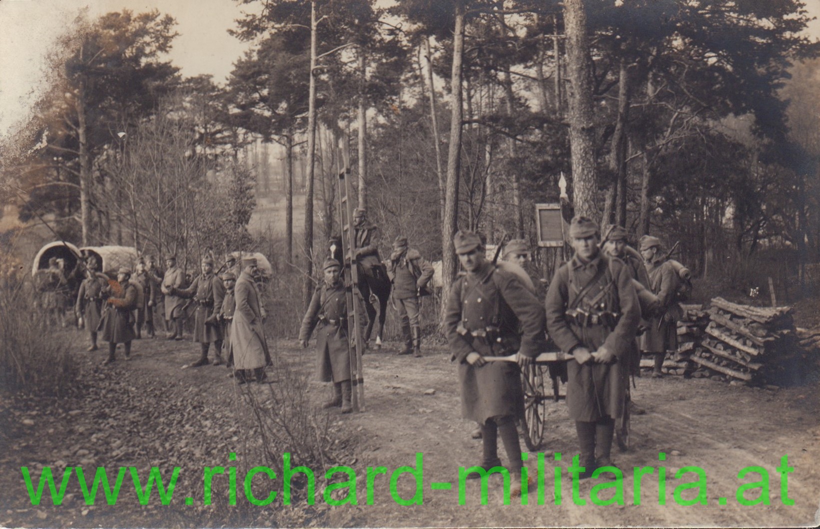 Produktinformationen "k.u.k. Foto Soldaten beim Verlegen einer Telefonverbindung - mit Wagen und Leiter im Feld"