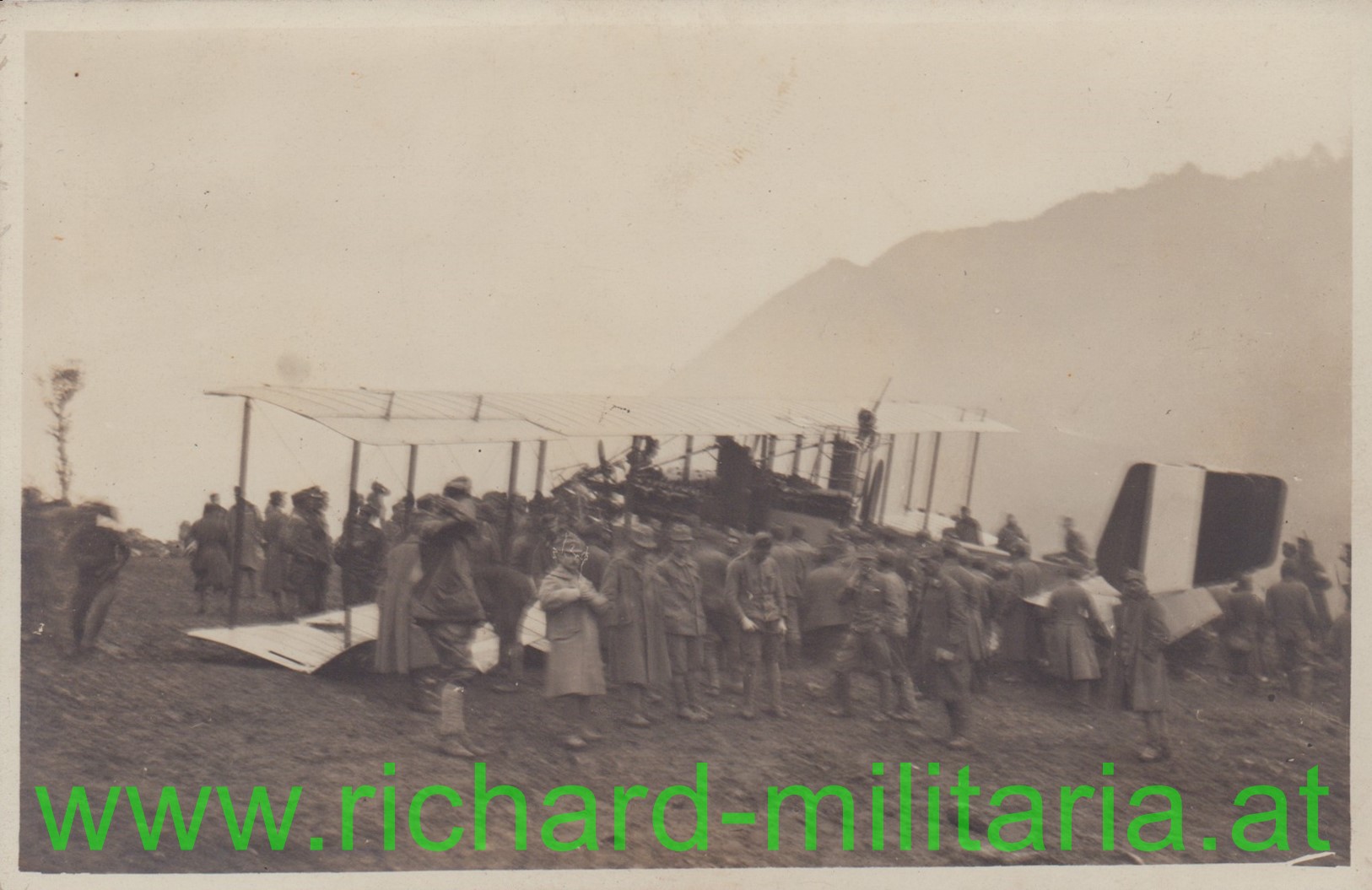 k.u.k. Foto Soldatengruppe vor österr.-ungarischem Flugzeug