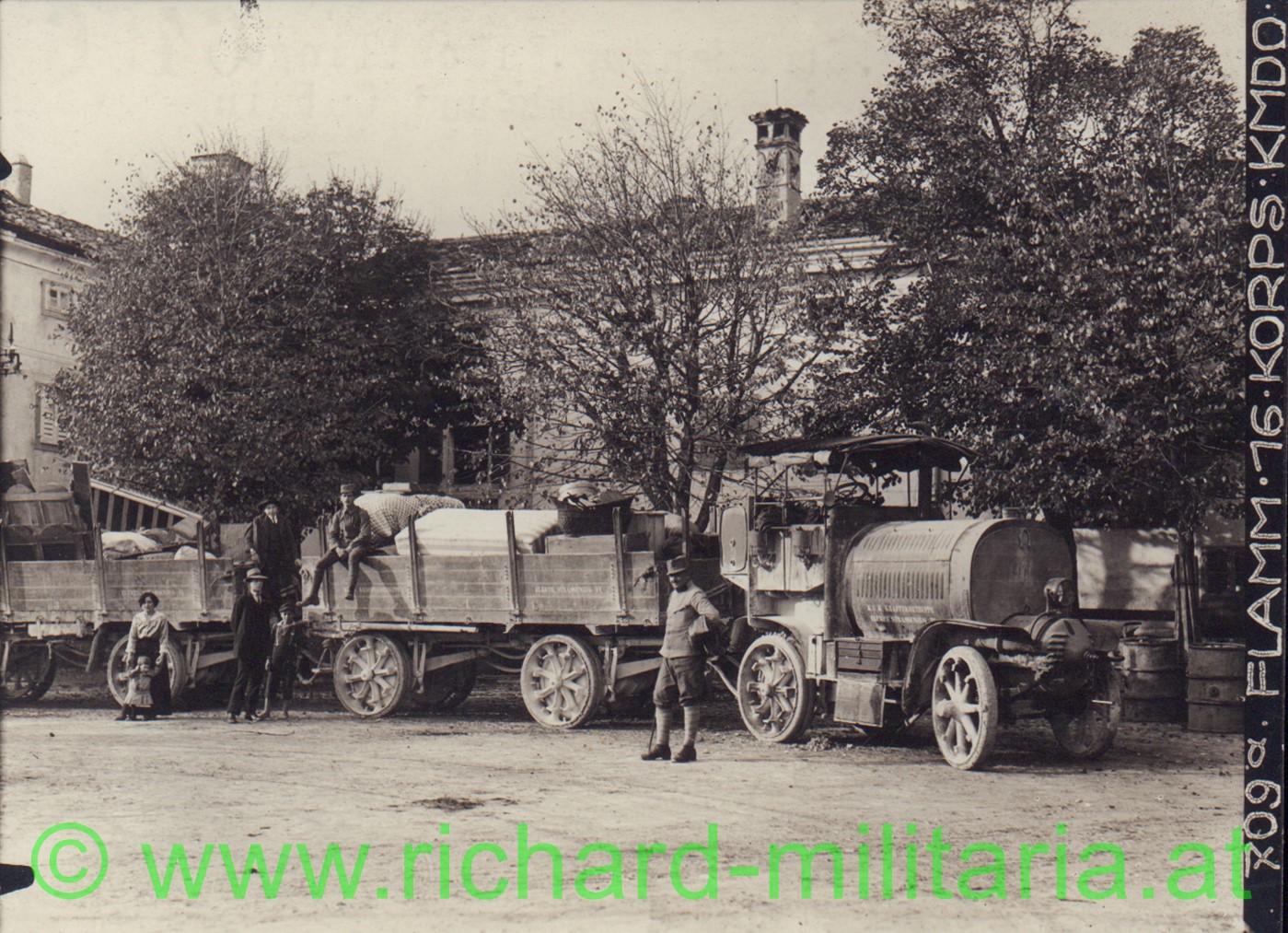 k.u.k. Foto - Strassenzug Nr. 11 - Flüchtlinge aus Görz werden in Sicherheit gebracht - 16. Korps Kmdo Flamm, rückseitig beschrieben, "Isonzo"-Stempel, datiert 2. Jänner 1917, 12 x 9 cm Format,