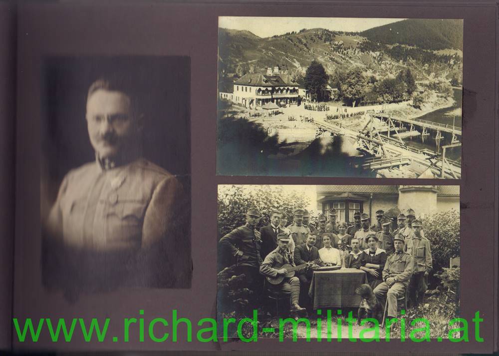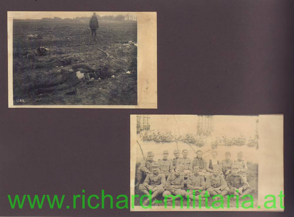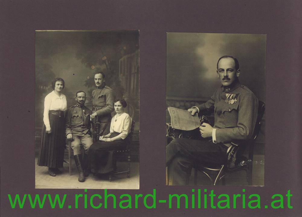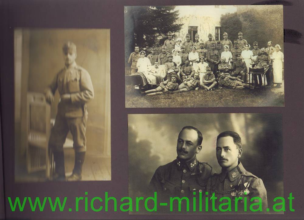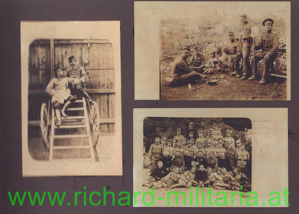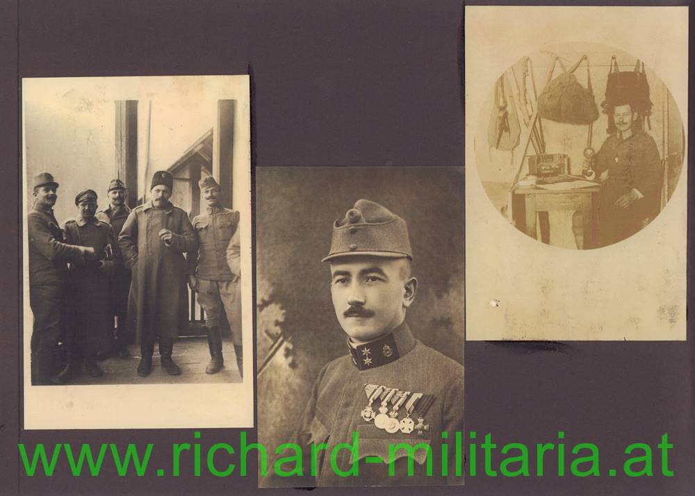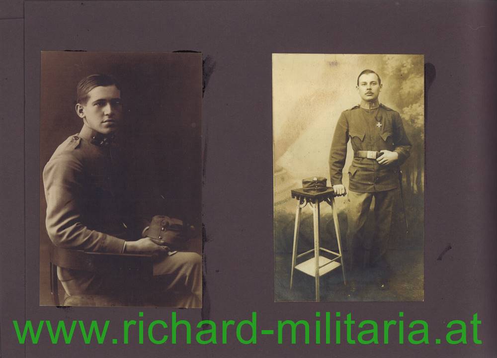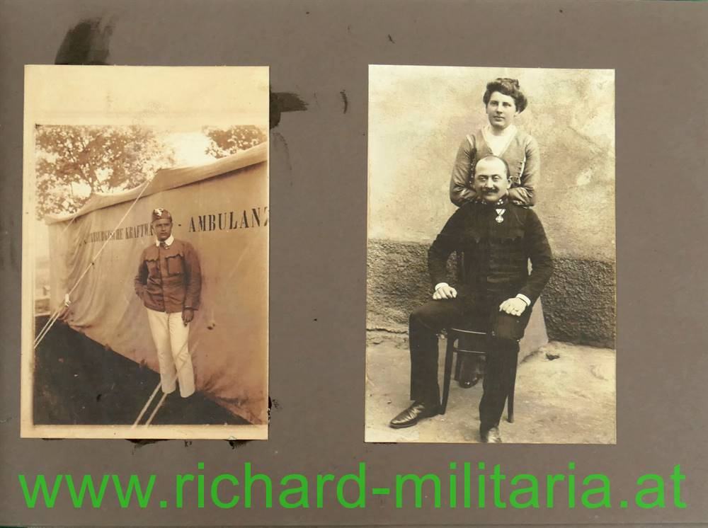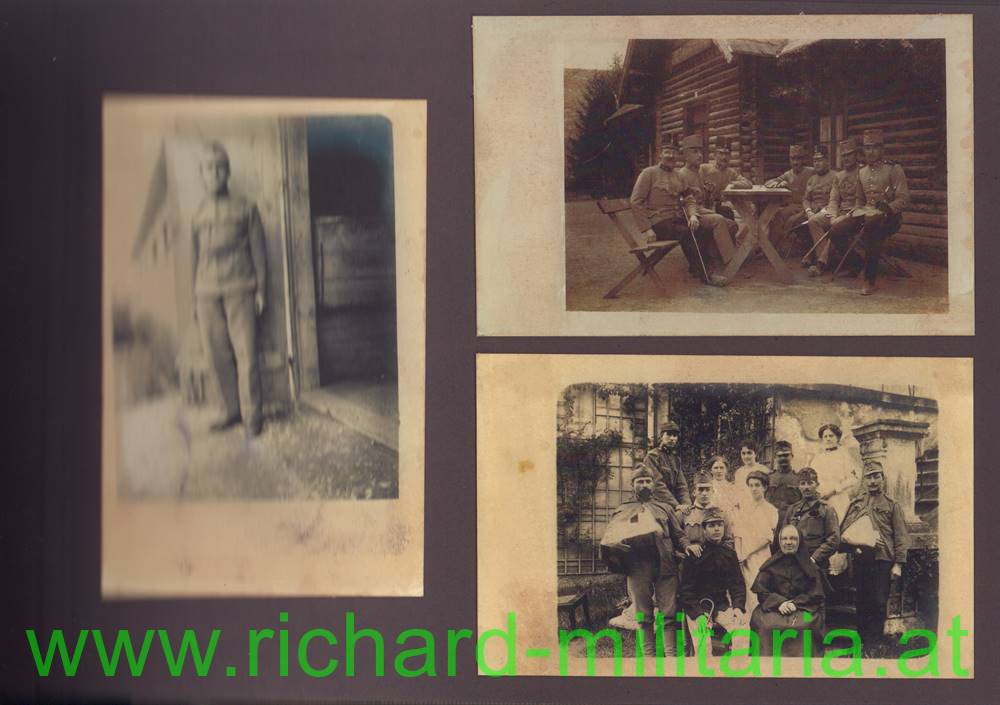k.u.k. Fotoalbum mit Bildern vom niederösterreichischen Infanterie Regiments 4 und Infanterie Regiment 31 sowie viele Gruppenfotos und Portraitfotos von teilweise dekorierten Soldaten, u.a. Bosniaken und Landesschützen; insgesamt 138 Fotos - alle eingeklebt!; meist Postkartenformat; auf der ersten Seite ein Gruppenfoto von Soldaten des niederösterreichischen Infanterie Regiments 4 mit ihrem Hauptmann Wilhelm Punzengruber im Jahr 1910; Wilhelm Punzengruber war laut Schematismus der k.u.k. Armee ab 1913 Major im Infanterie Regiment 14 und später im Infanterie Regiment Nr. 59; einige Fotos von Ärzten und Lazaretten sowie Fotos aus dem Alltag der Soldaten; auf den hinteren Seiten händisch beschriftete Fotos auch von Soldaten der Artillerie sowie Bilder von der Front gegen Russland; einige sehr schöne Portraitfotos z.B. Soldat der Kraftfahrttruppe mit italienischem Terni-Beutebajonett; etc.