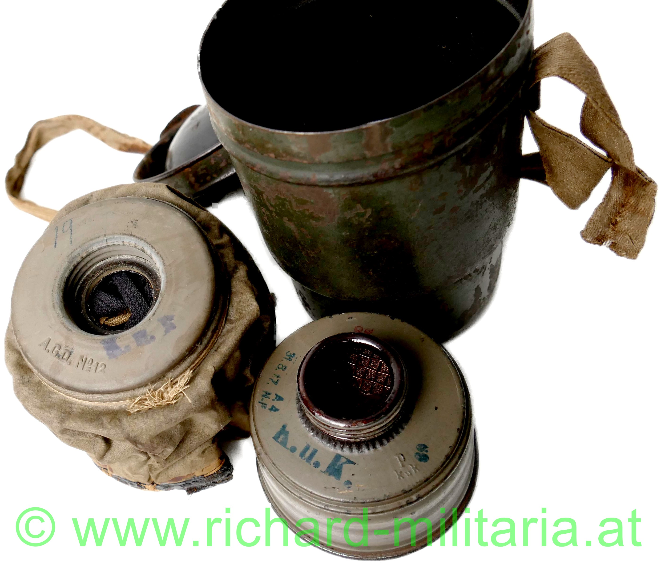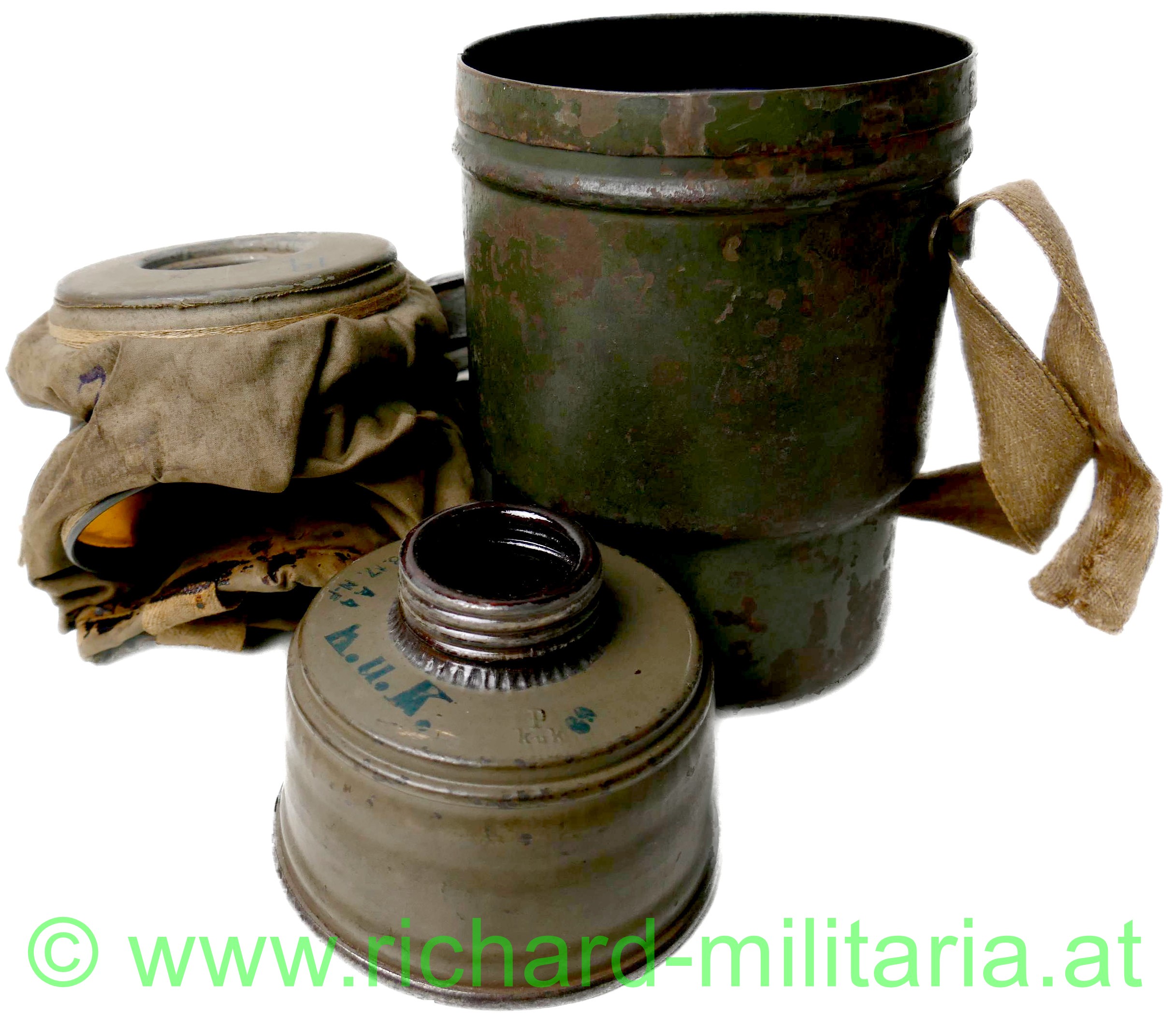 k.u.k. Gasmaske TYP A5 Behälter - komplett - österreichische Fertigung