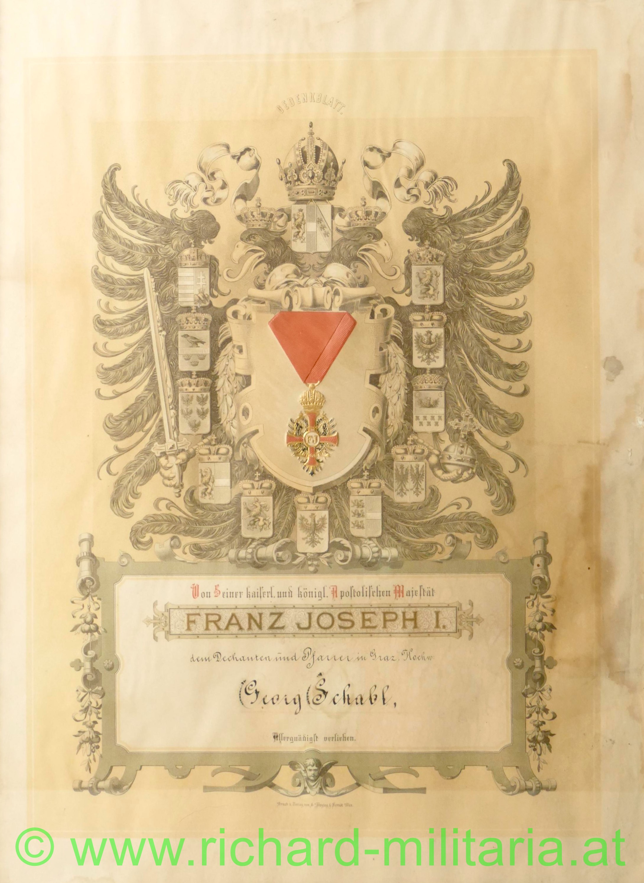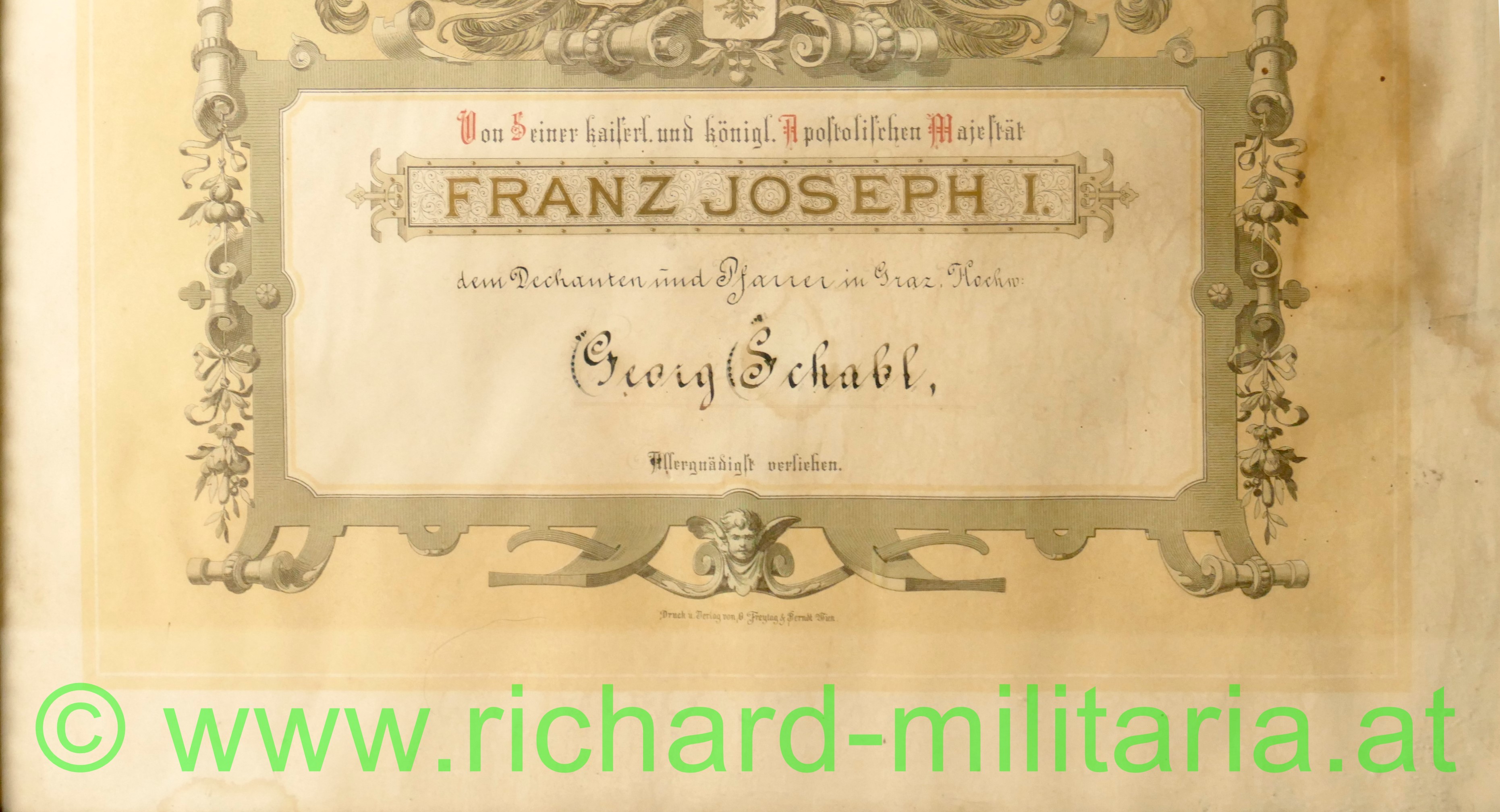k.u.k. Gedenkblatt Franz Joseph Orden - Pfarrer aus Graz