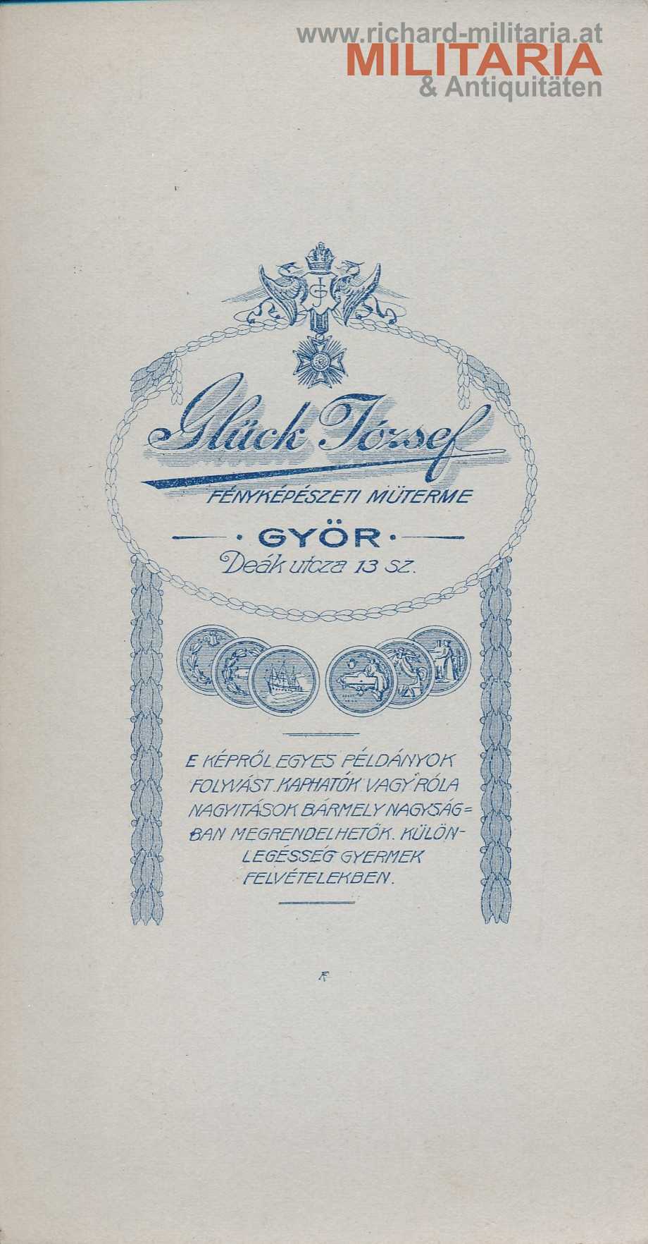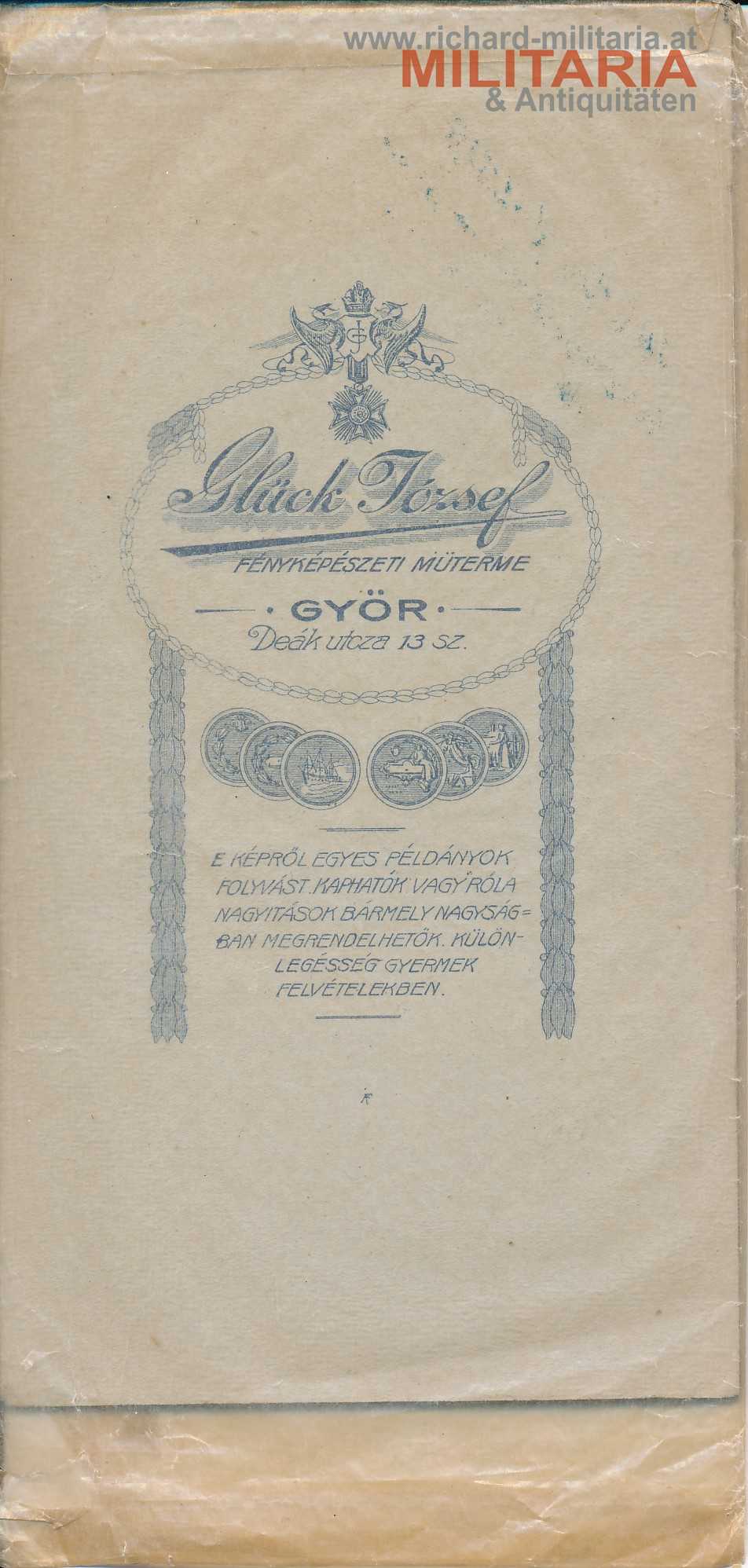 Hartkartonfoto von k.u.k. Generalmajor (später Generaloberst) Hermann Kusmanek von Burgneustädten - Der Löwe von Przemysl; in Papierumschlaghülle mit Aufdruck des Fotografen Glück Jozef, Györ