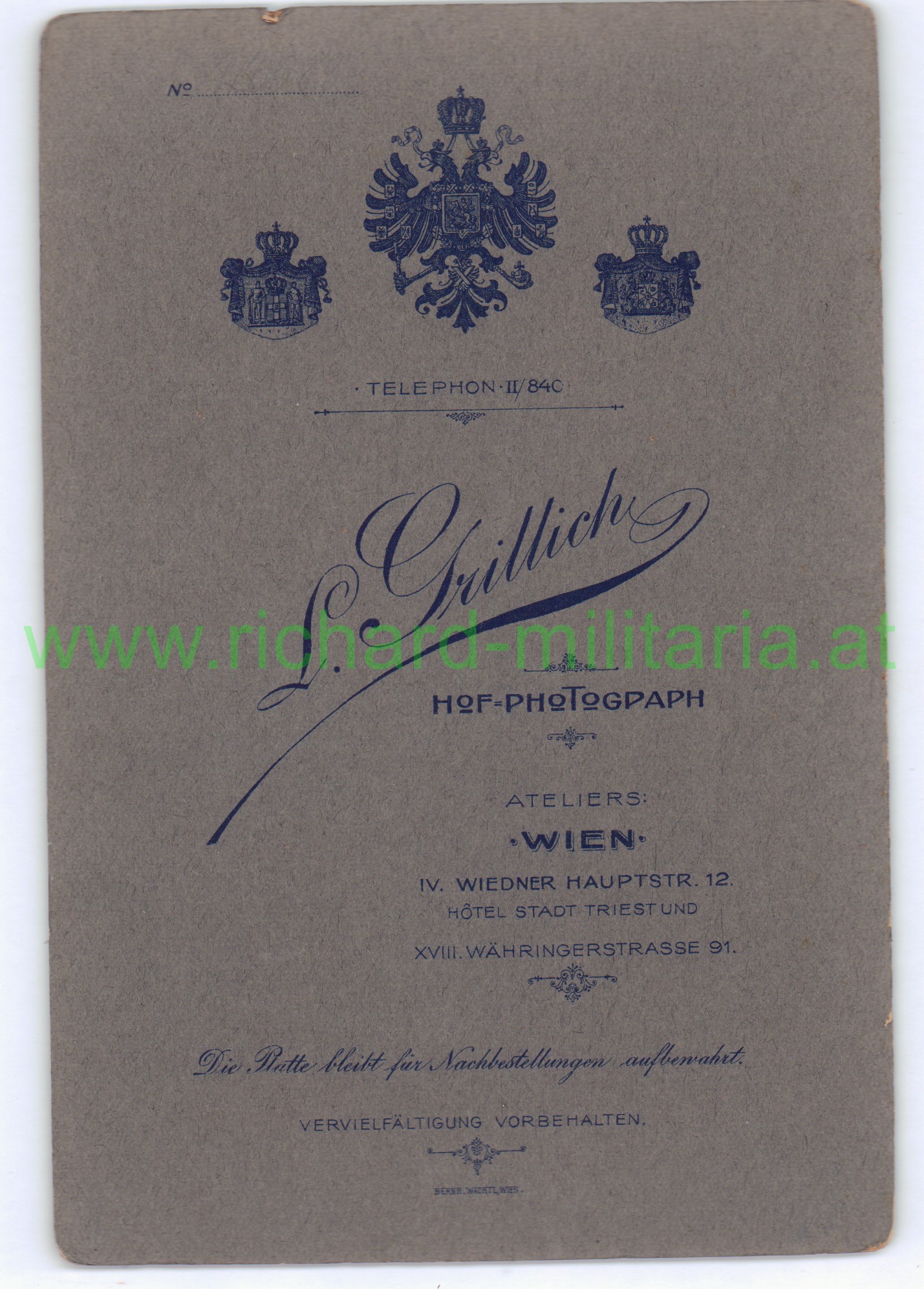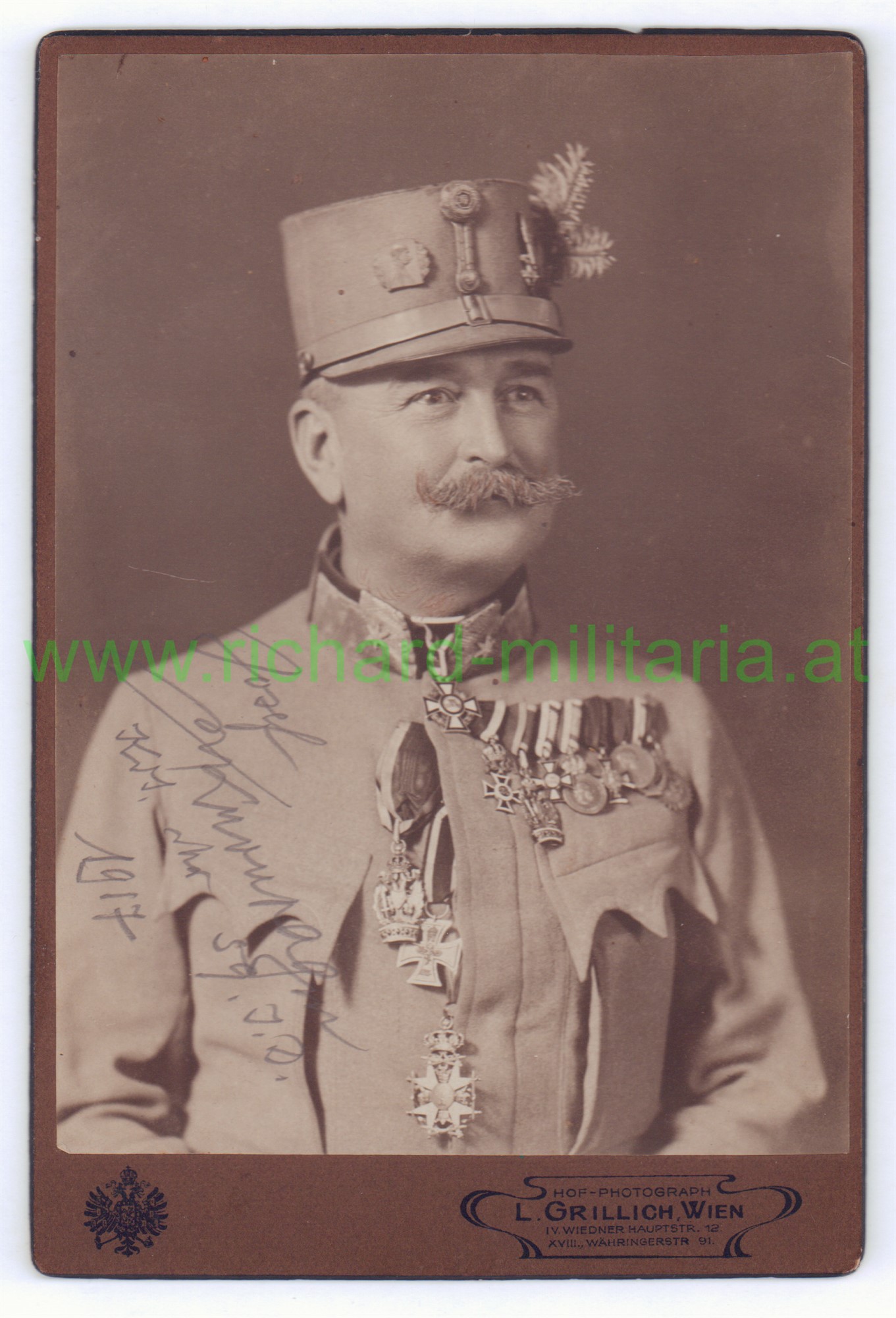 Portraitfoto auf Hartkarton des Generalmajor Joseph Edler von Kroupa; mit Bleistift links beschrieben und signiert "Josef Kroupa GM, KM der 59. I.D. 1917";