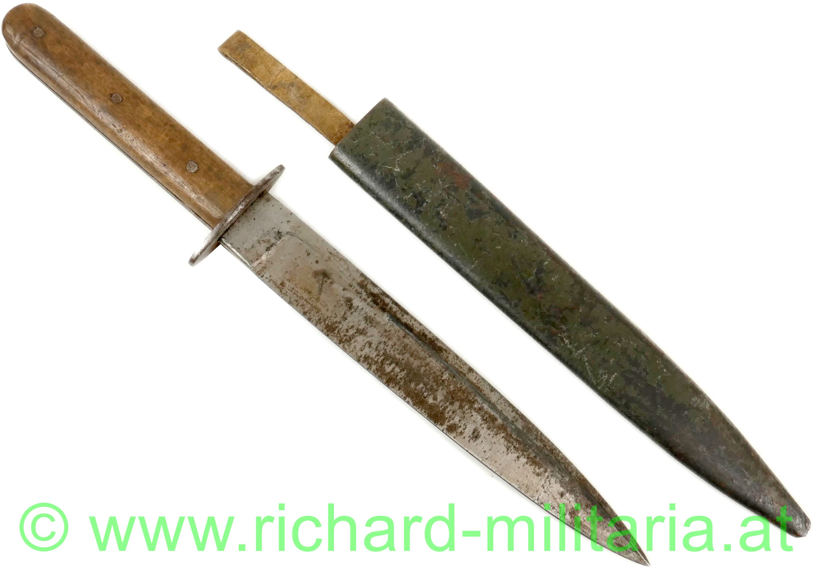 Ein sehr schönes, kaum benutztes Kampfmesser des wohl seltensten Herstellers für Grabendolche der k.u.k. Armee! Uns sind nur ganz wenige Stücke dieses Herstellers bekannt!