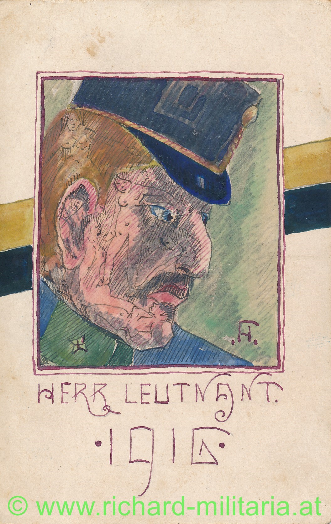 k.u.k. handgemalte Feldpostkarte-Herr Leutnant 1916