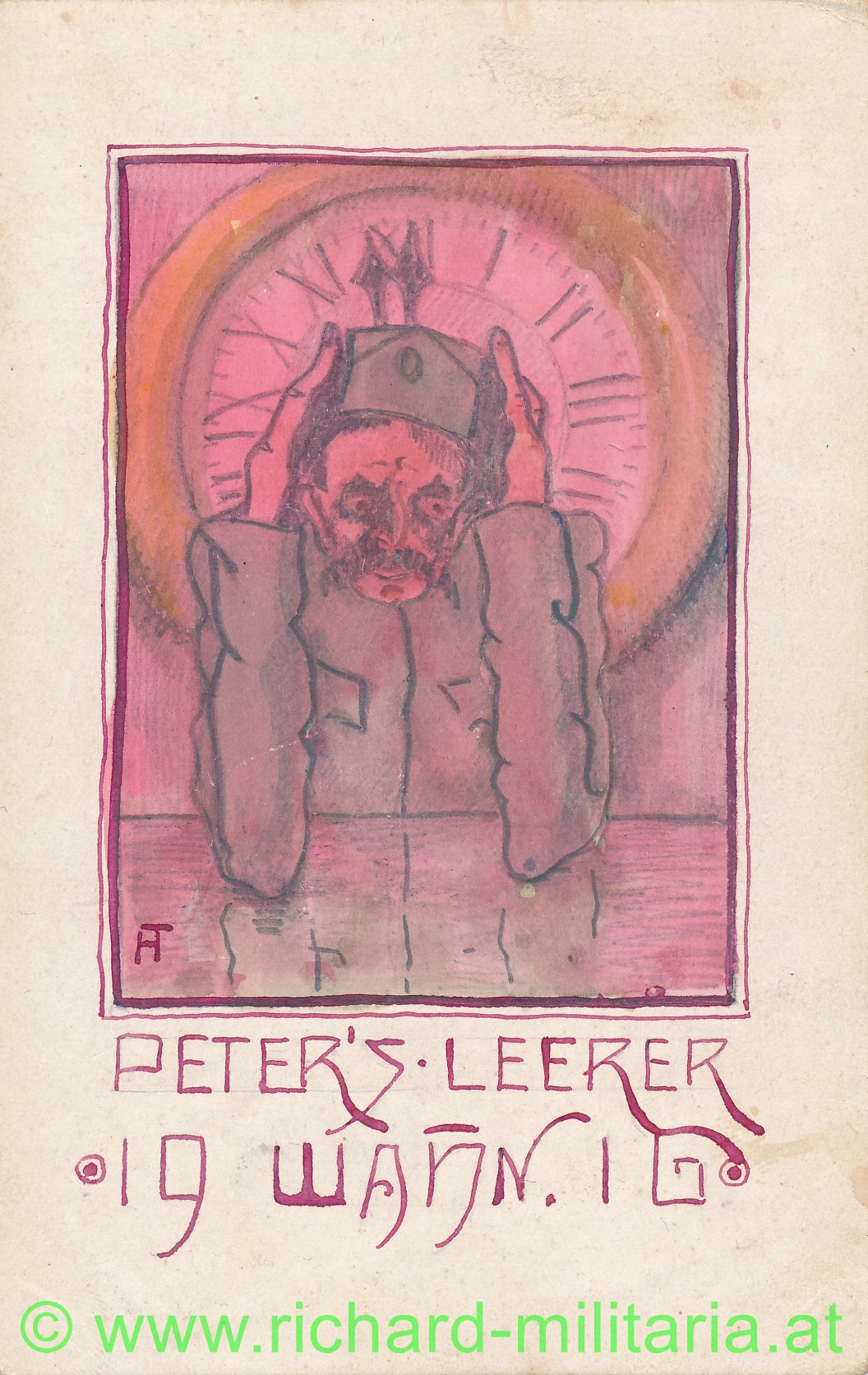 Produktinformationen "k.u.k. handgemalte Feldpostkarte-Peter's leerer Wahn - 1916"