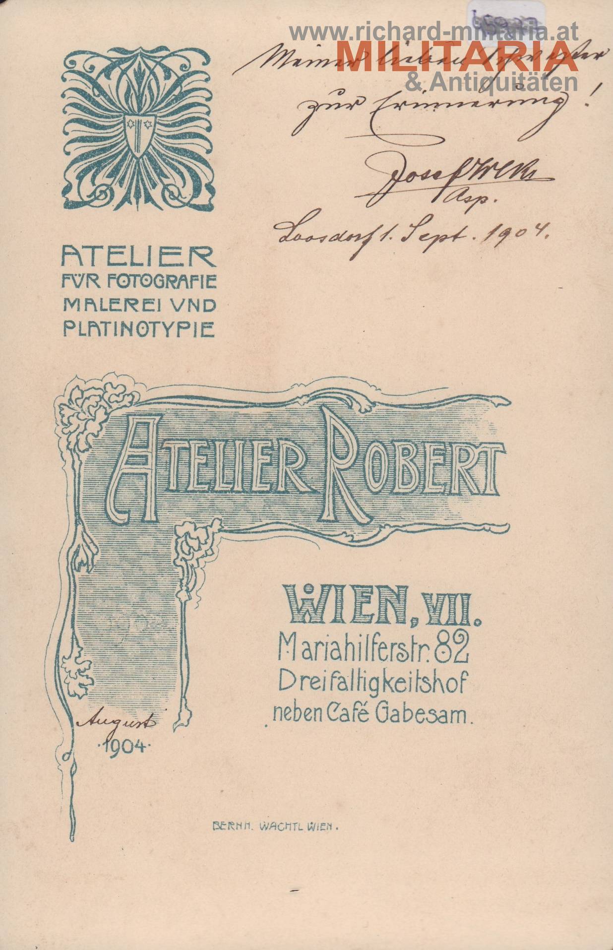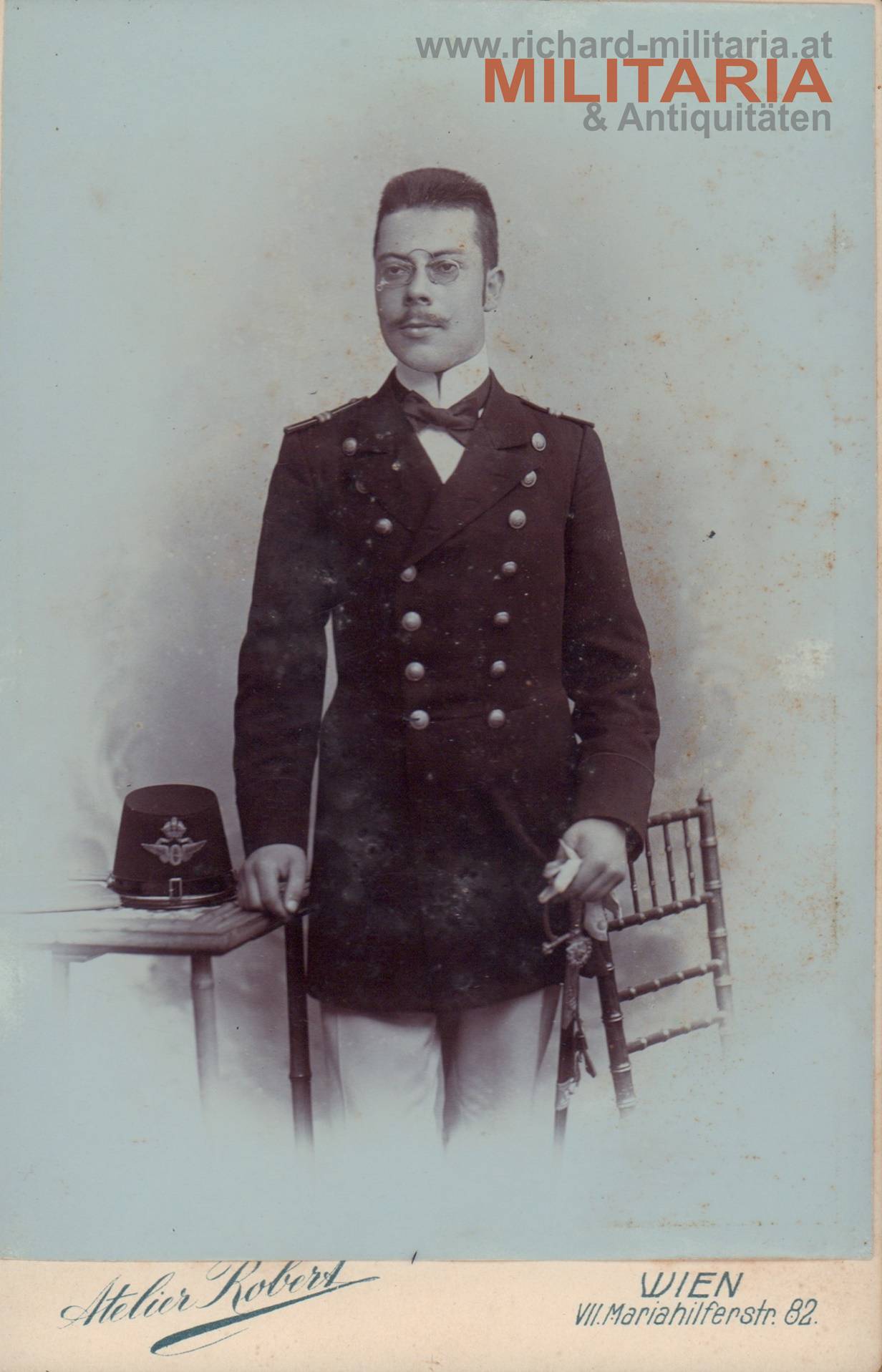 k.u.k. Hartkartonfoto - Beamter der Staats-Eisenbahnlinien; auf der Kappe das Symbol der Eisenbahner mit überhöhter Kaiserkrone gut zu erkennen; datiert auf 1904; Foto hat sich etwas vom Hartkarton gelöst;