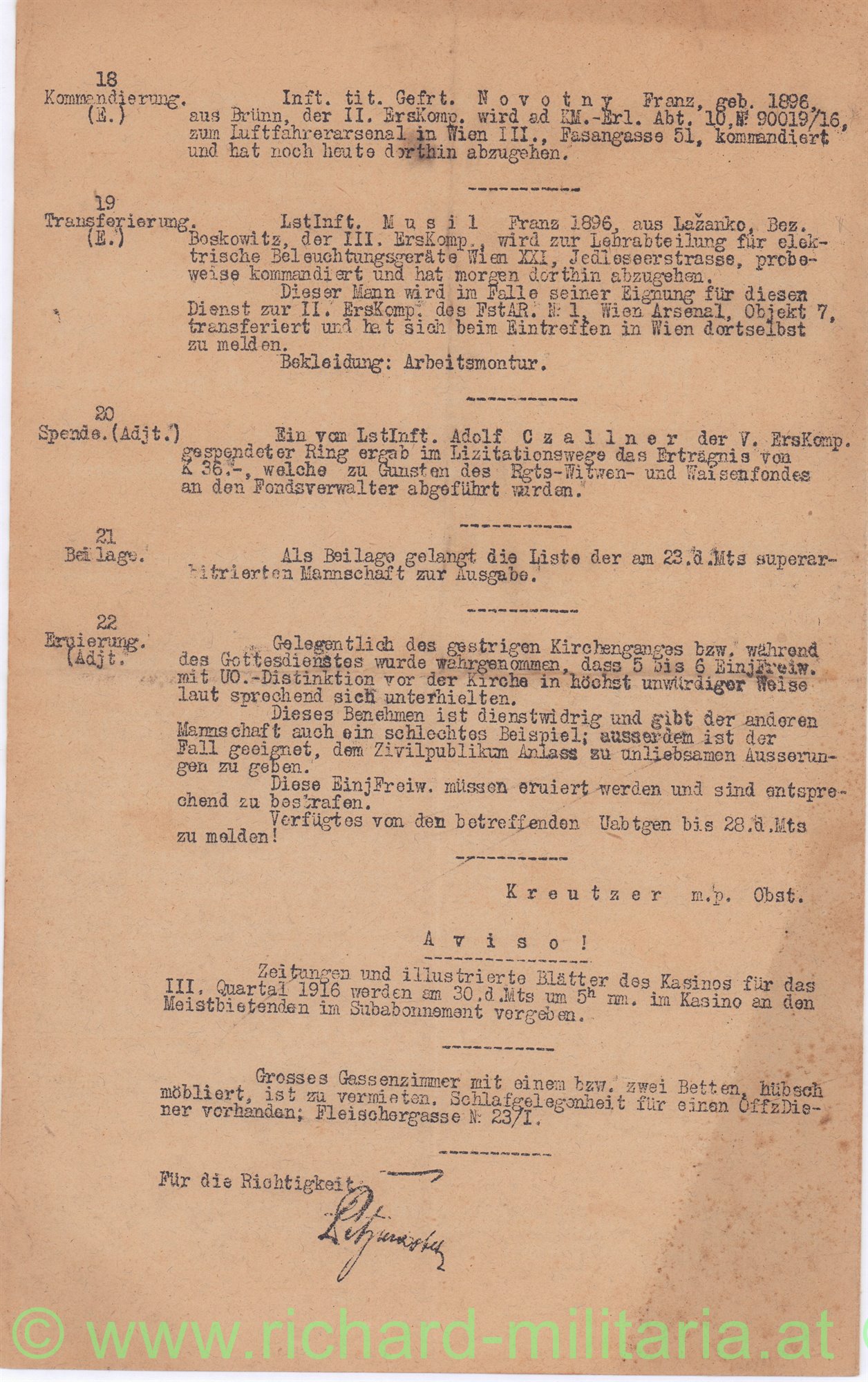 Interessante Kommandobefehle mit u.a. Ernennungen, Auszeichnungs-Verleihungen, Einteilungen, etc.