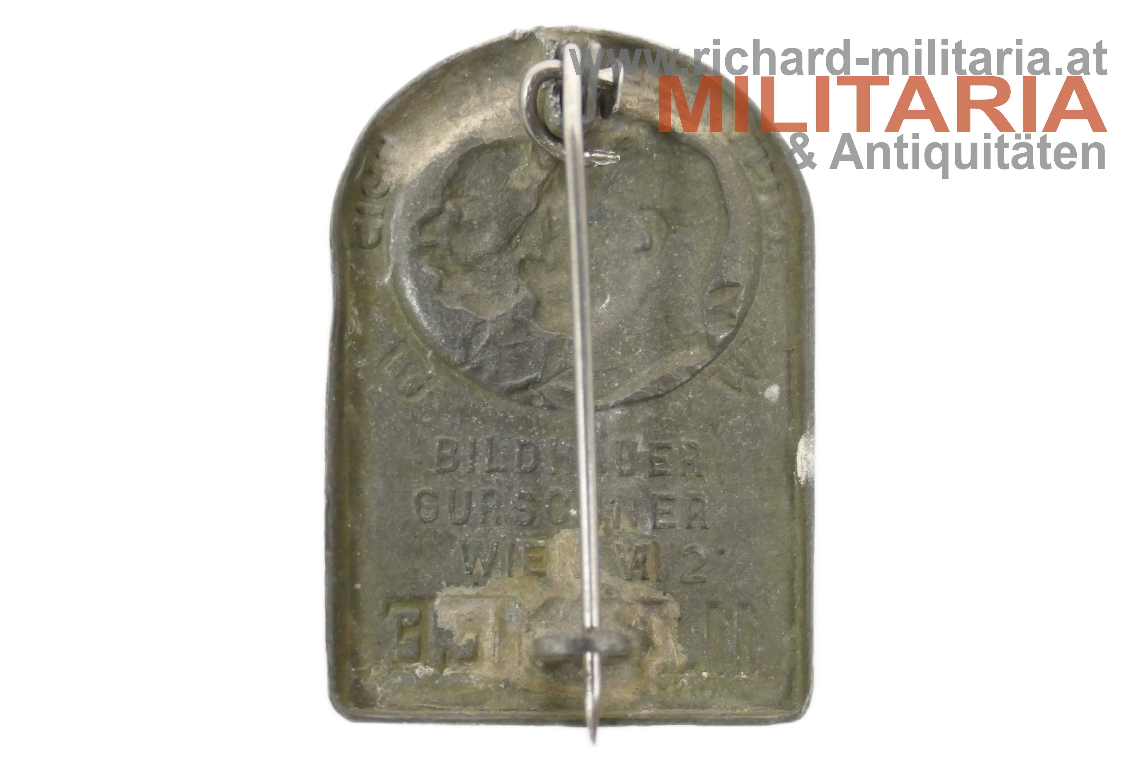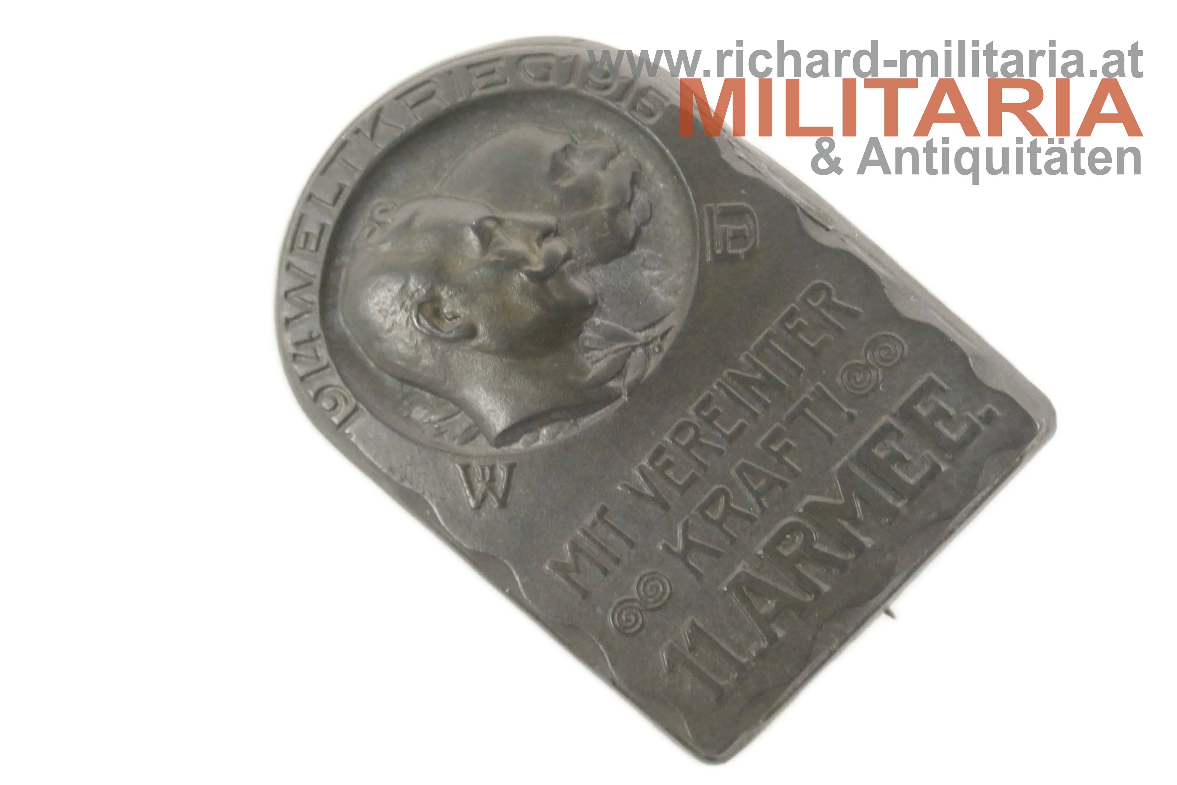 k.u.k. Kappenabzeichen - 11. Armee - Mit vereinter Kraft - 1914-1915; Zink; originales Nadelsystem;