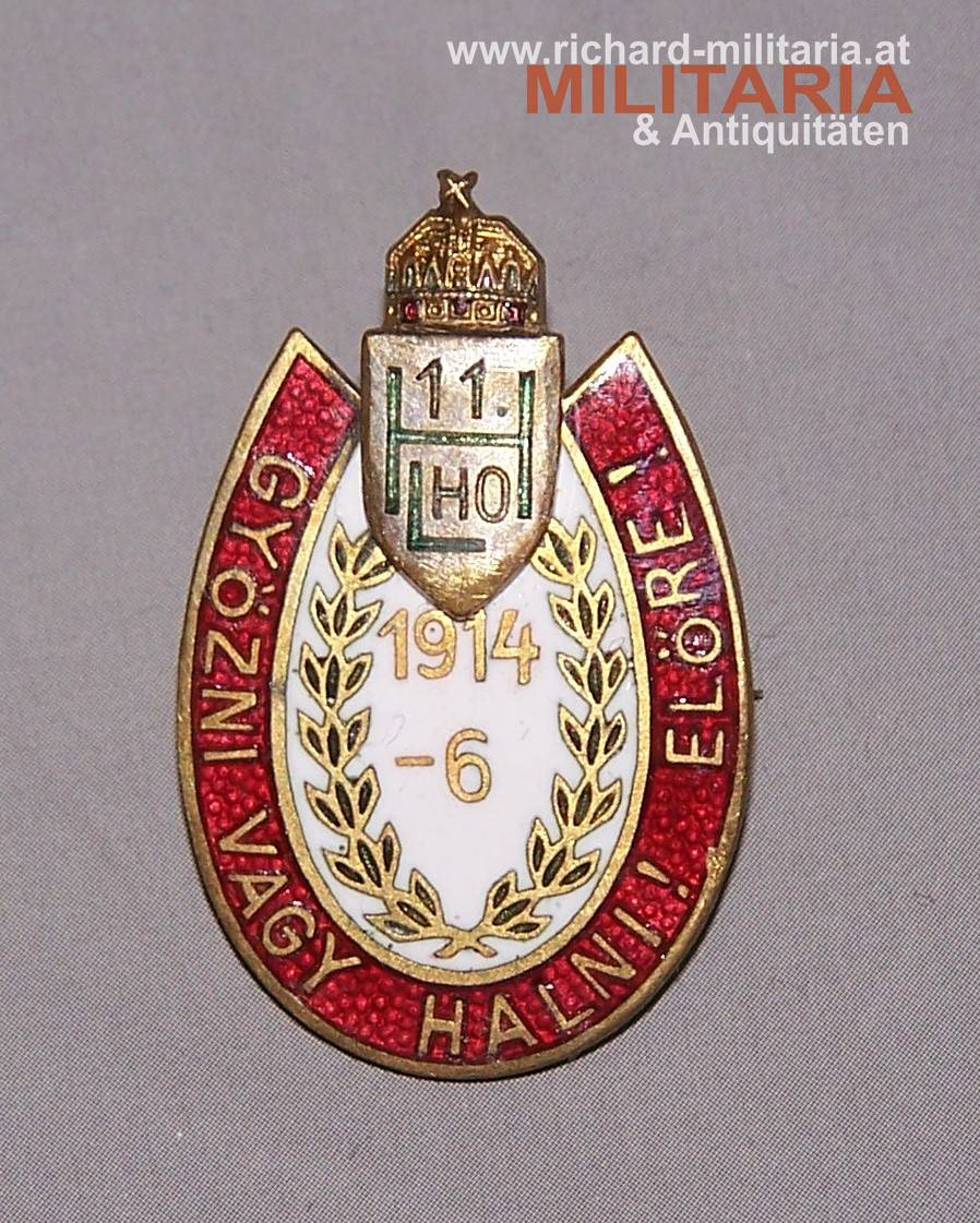 k.u.k. Kappenabzeichen 11.H.L.Ho. (Honvéd Kavallerie Truppen Division) 1914-16 Győzni vagy halni! Előre! (Sieg oder