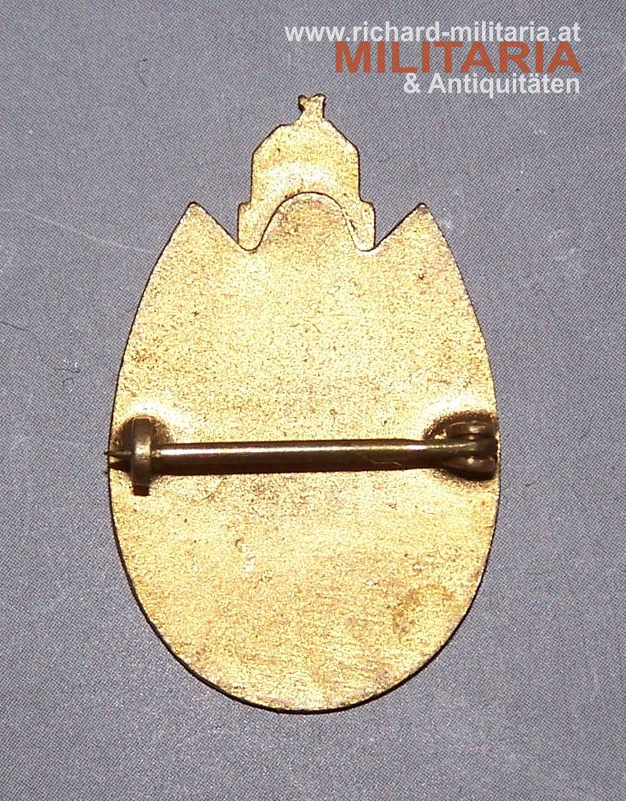 Tod! Vorwarts!); Tombak vergoldet und emailliert; guter Zustand mit Tragespuren und originalem Nadelsystem.