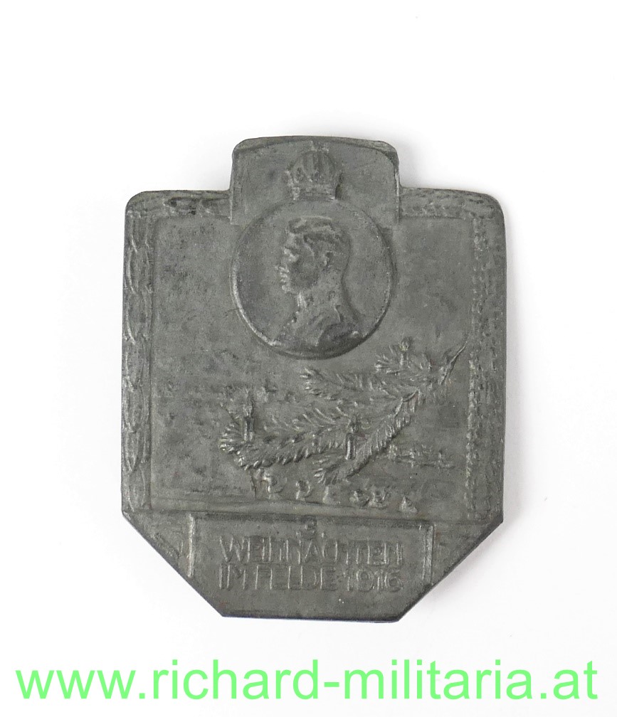 k.u.k. Kappenabzeichen 3. Weihnachten im Felde - Kaiser Karl, Zink
