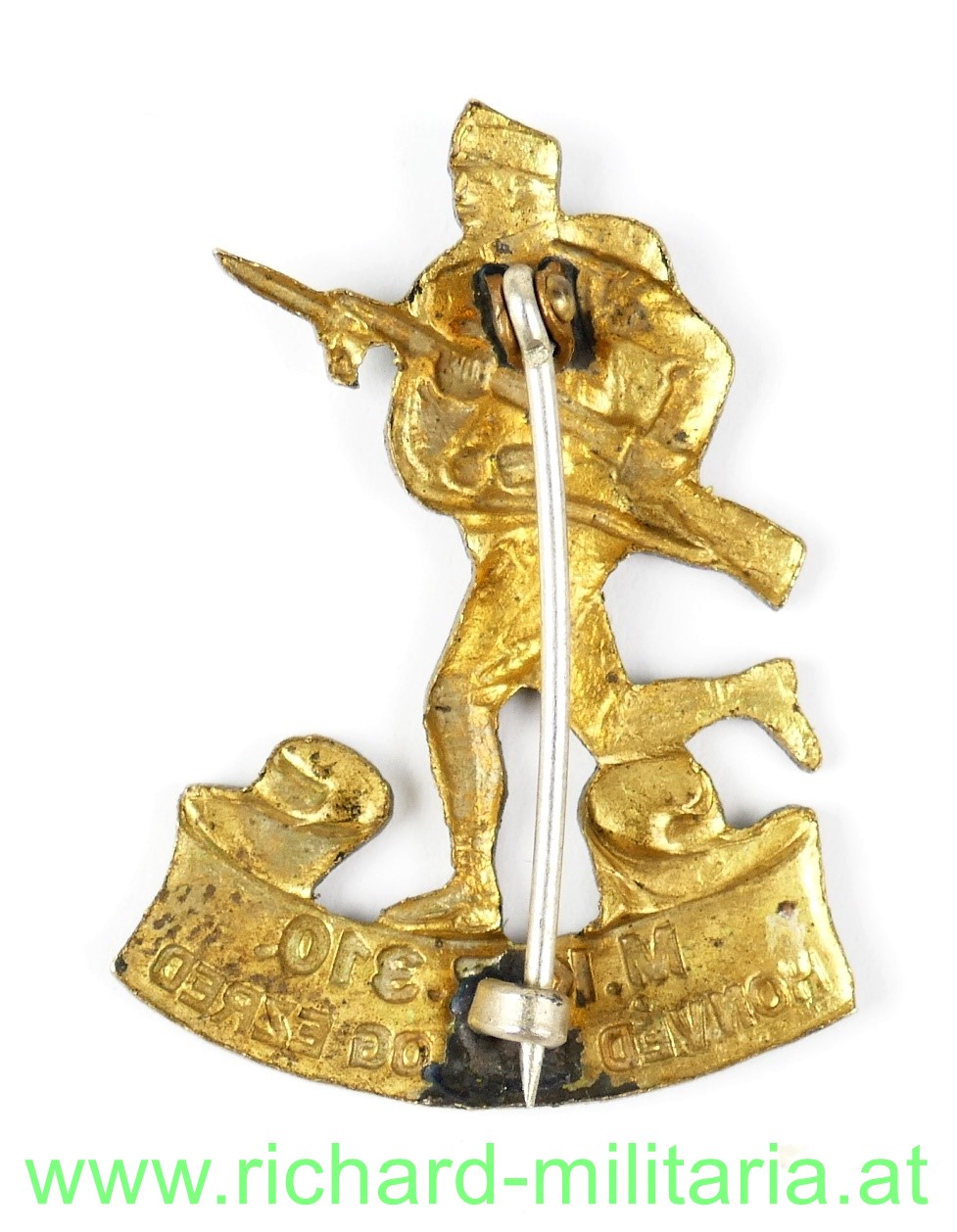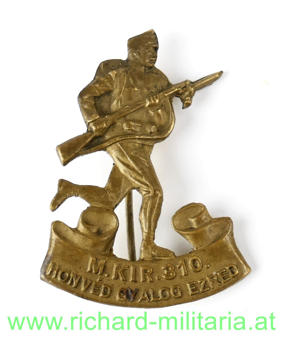 k.u.k. Kappenabzeichen 310. HIR, Tombak, Originale Nadel und Nadelhaken,