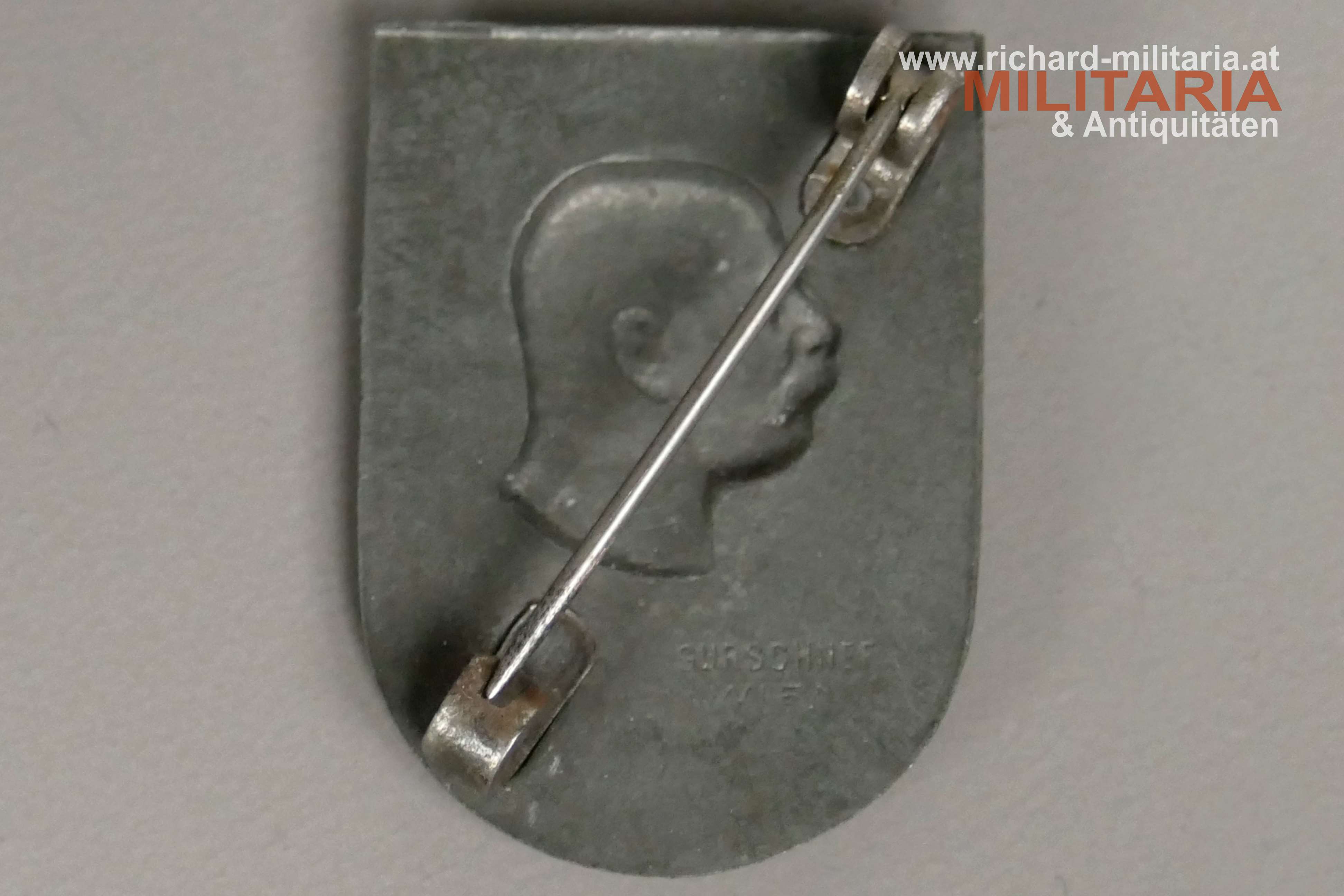 k.u.k. Kappenabzeichen - Balkanstreitkräfte 1914-1915, Hersteller: Gurschner, Wien, Kriegsmetall, mit Originalnadel