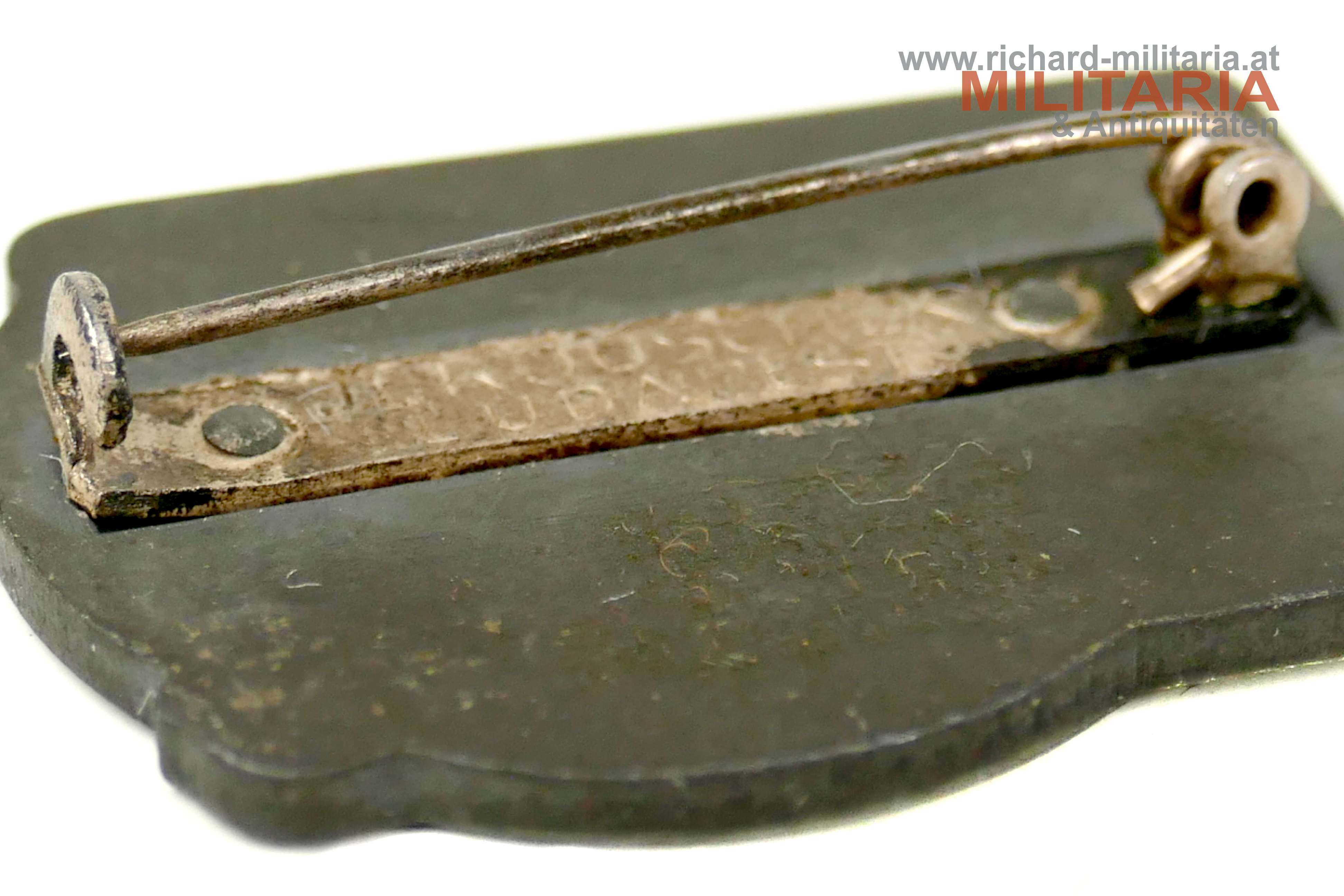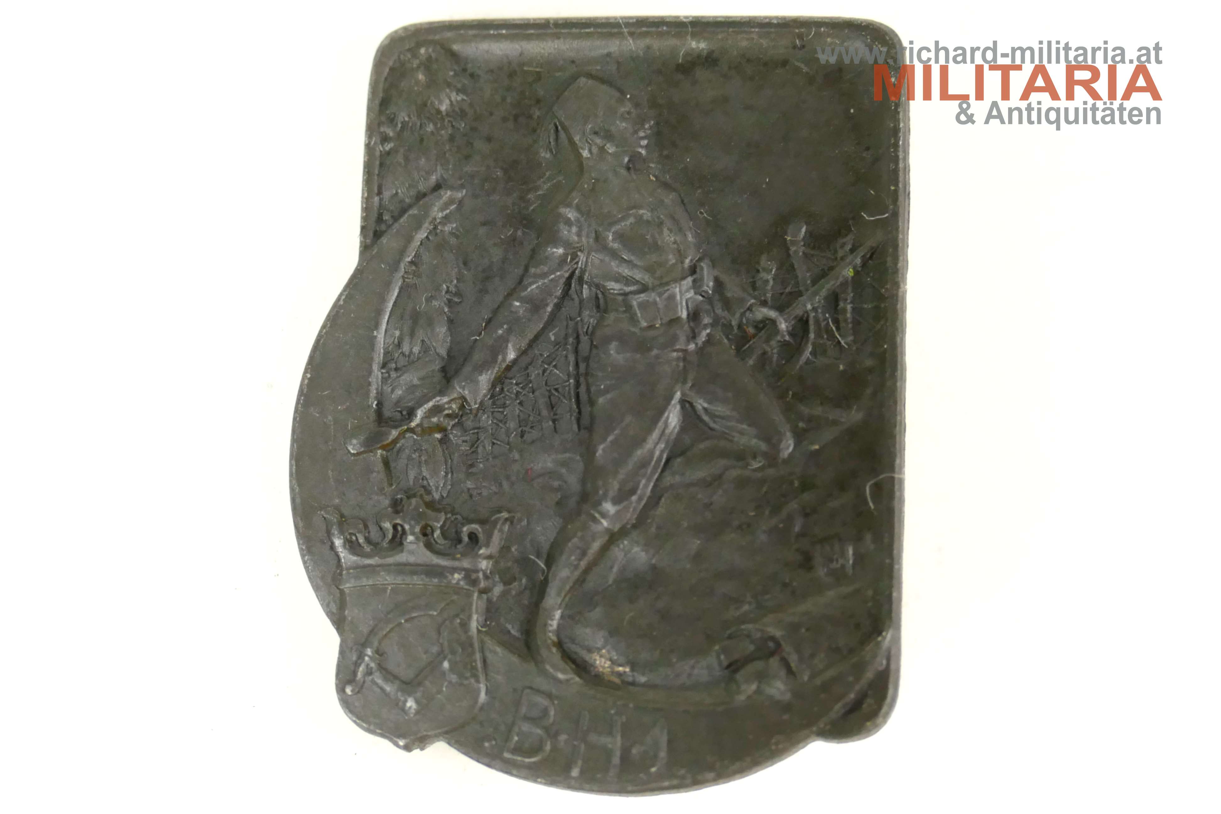 k.u.k. Kappenabzeichen - Bosnisch herzegowinisches Infanterie Regiment 1 (BH1); Zink massiv - dunkel patiniert; originales Nadelsystem mit Hersteller "Jerouschek Budapest";