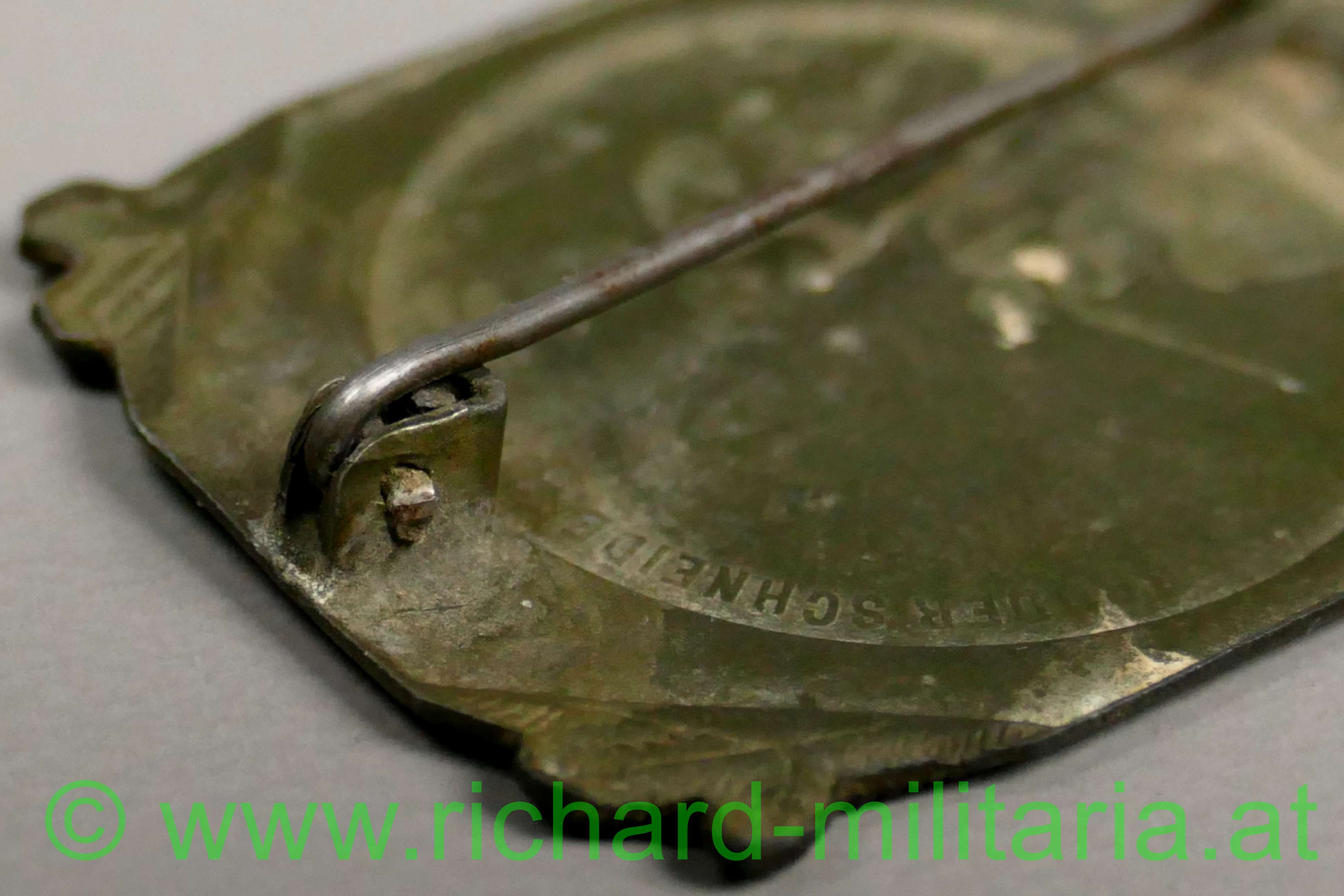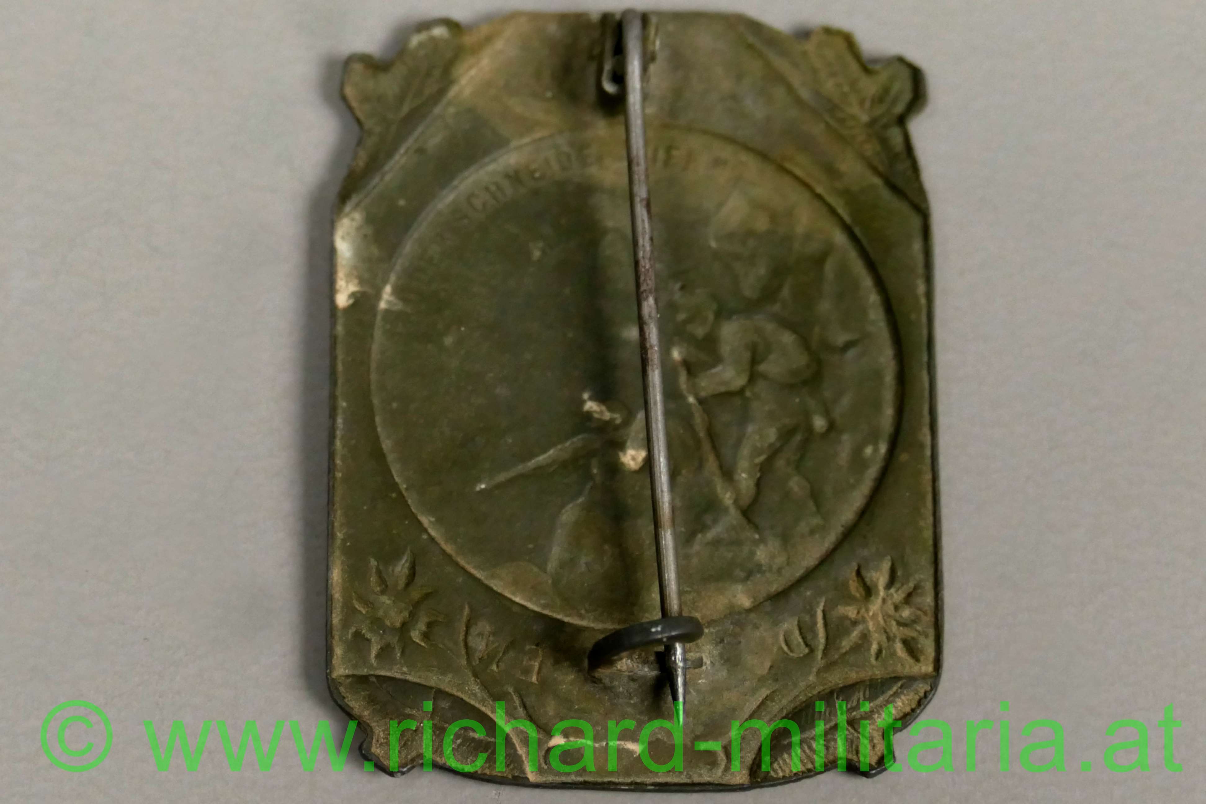 k.u.k. Kappenabzeichen DOLOMITEN 1914-16, Kriegsmetall, originale Nadel, minimale Oxidation frontseitig;