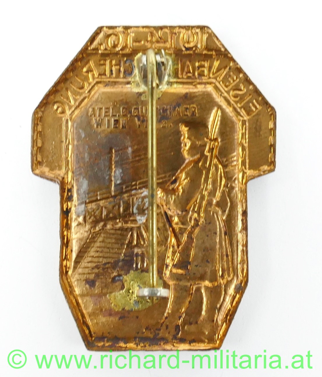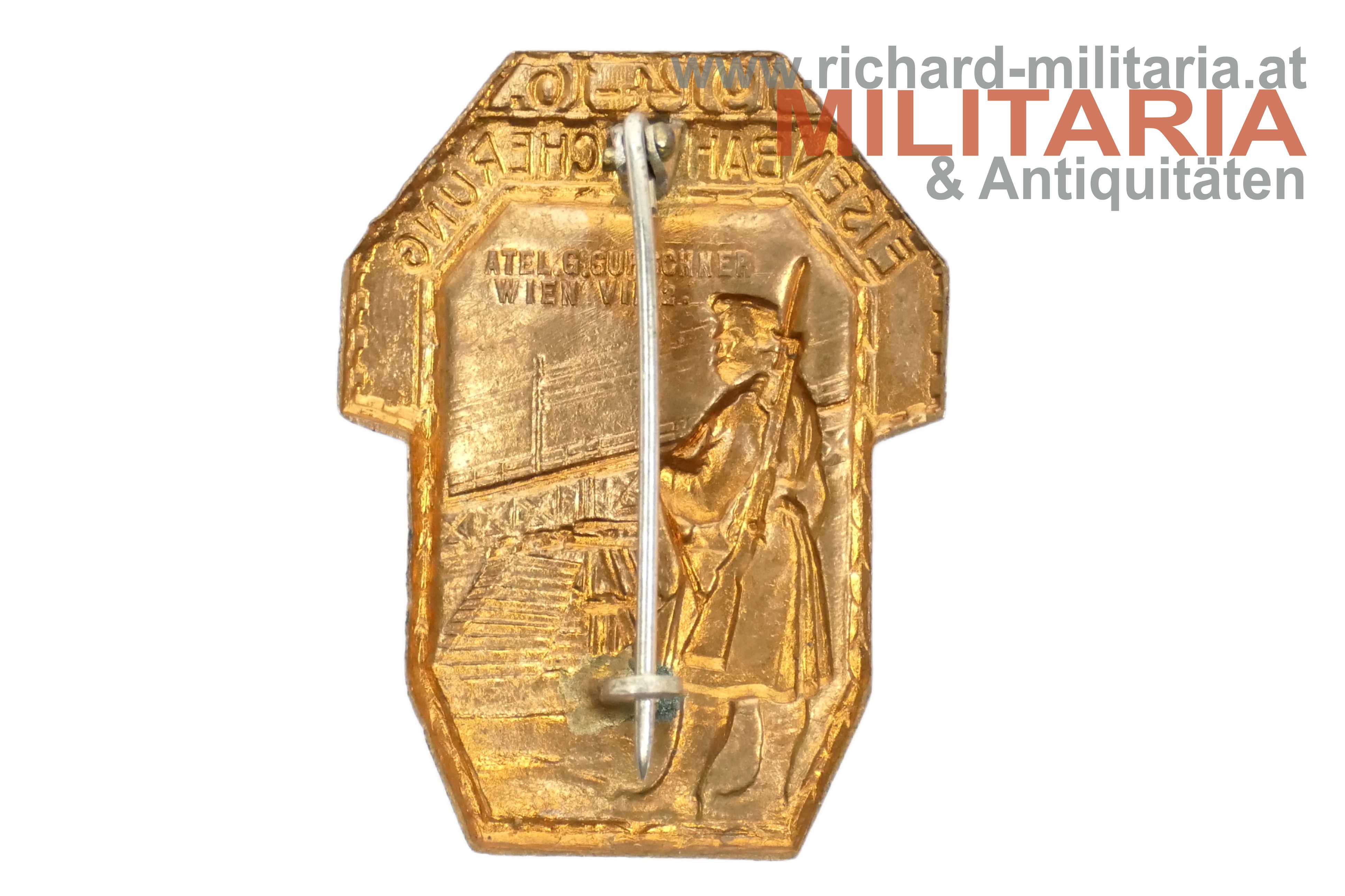 k.u.k. Kappenabzeichen - Eisenbahnsicherung 1914-1916; Tombak; originales Nadelsystem;