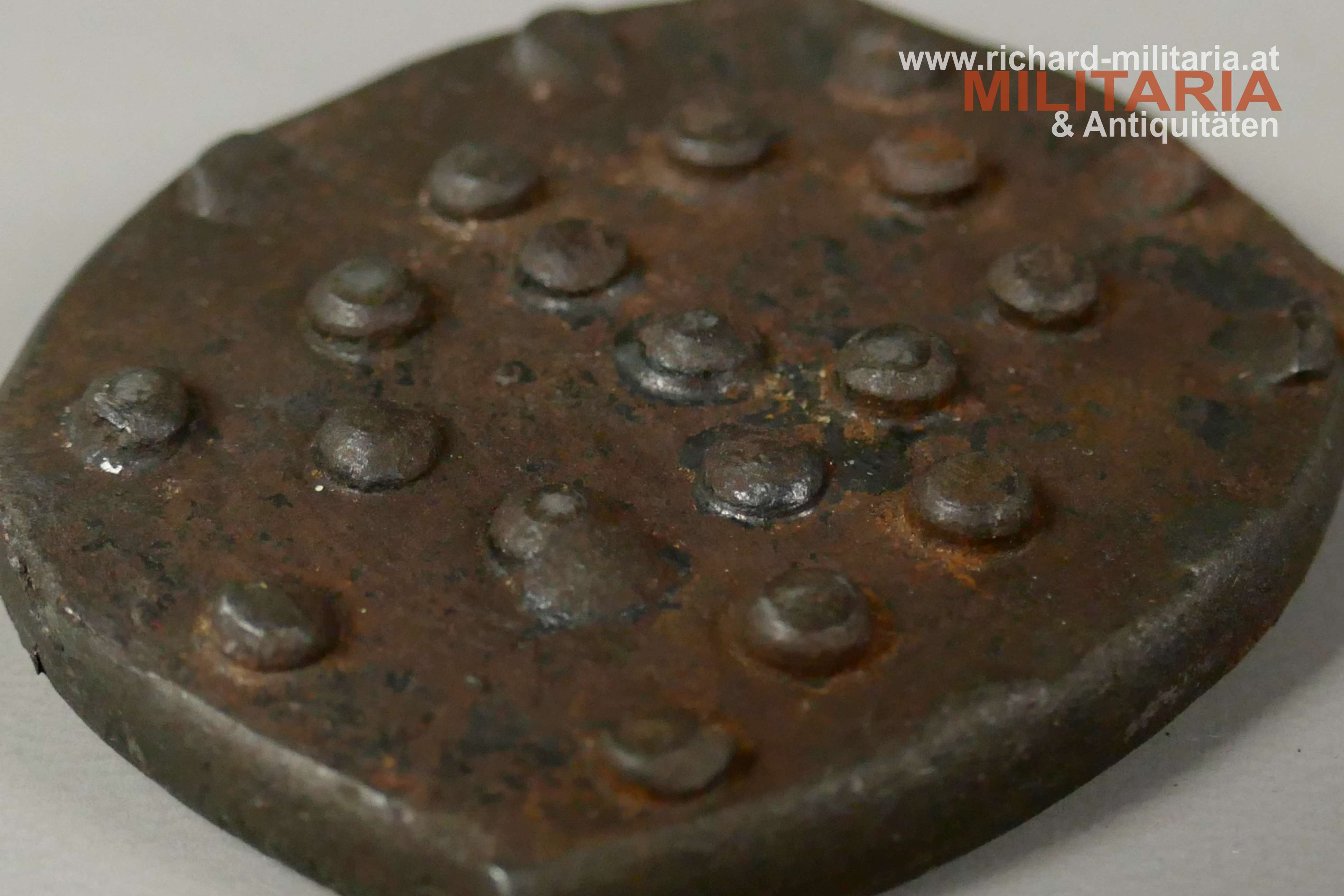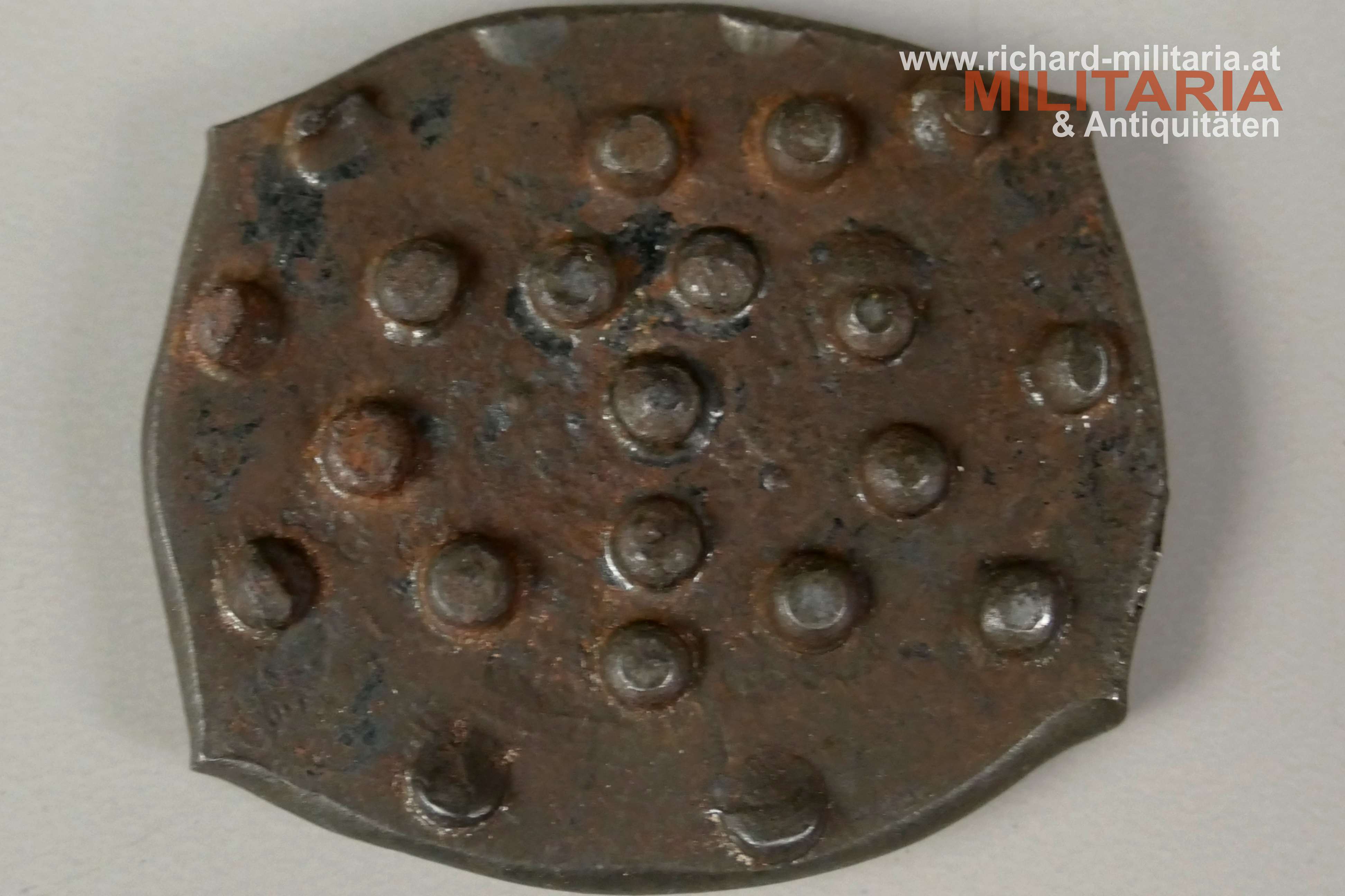 k.u.k. Kappenabzeichen - Feldhaubitzen Batterie 6/34. - originaler Prägestock, massives Eisen mit Justierungspunkten auf der Rückseite