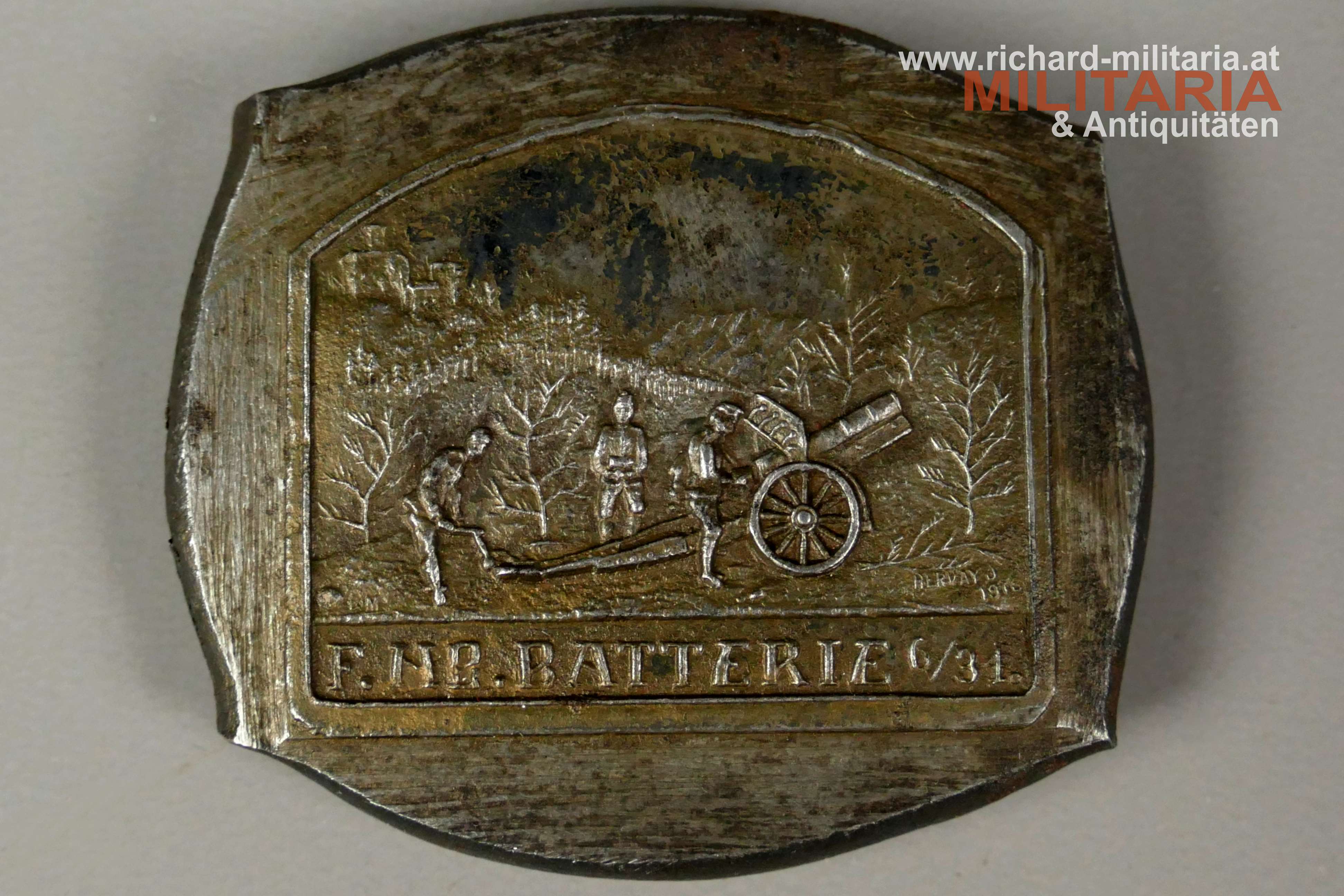 k.u.k. Kappenabzeichen - Feldhaubitzen Batterie 6/34. - Prägestock
