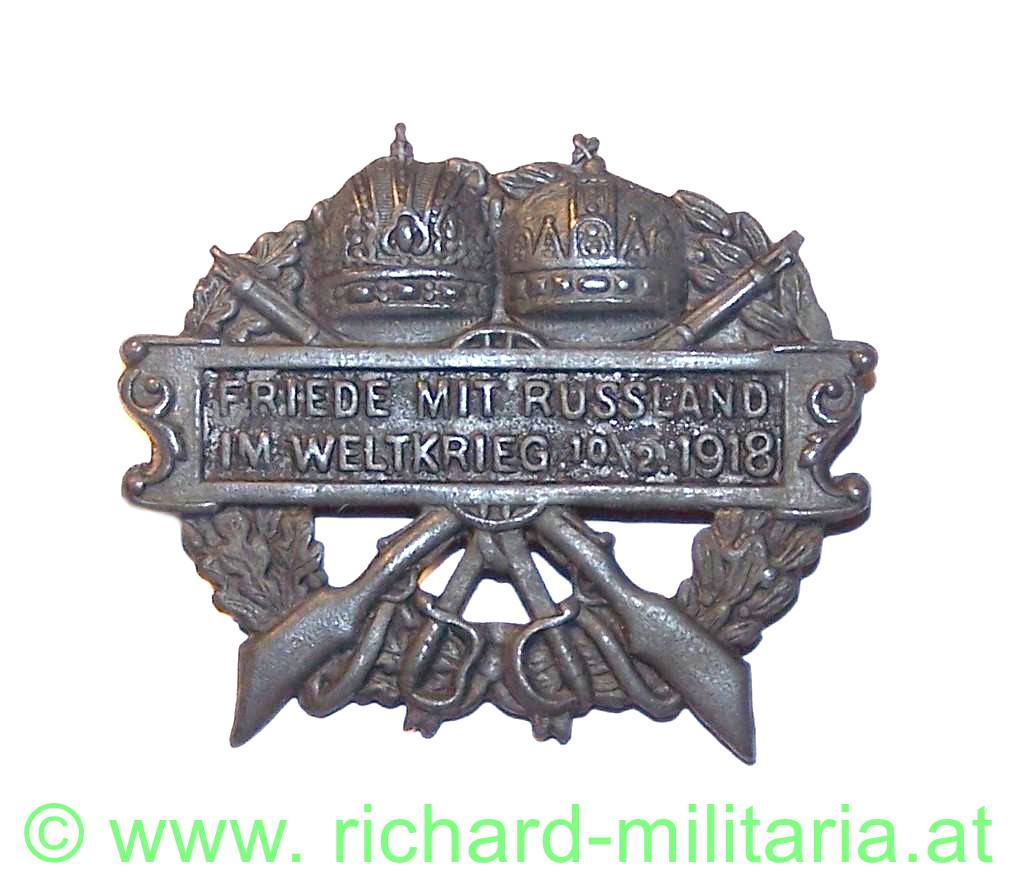 k.u.k. Kappenabzeichen Friede mit Russland im WK 10.2.1918