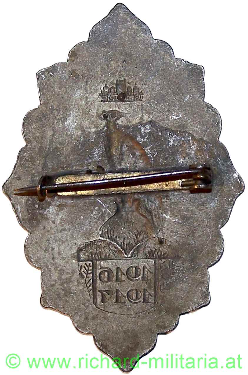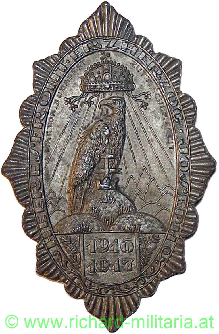 k.u.k. Kappenabzeichen Heeresfront Erzh. Josef 1916-1917, Kriegsmetall, mit Hersteller auf der Rückseite, orginales Nadelsystem;