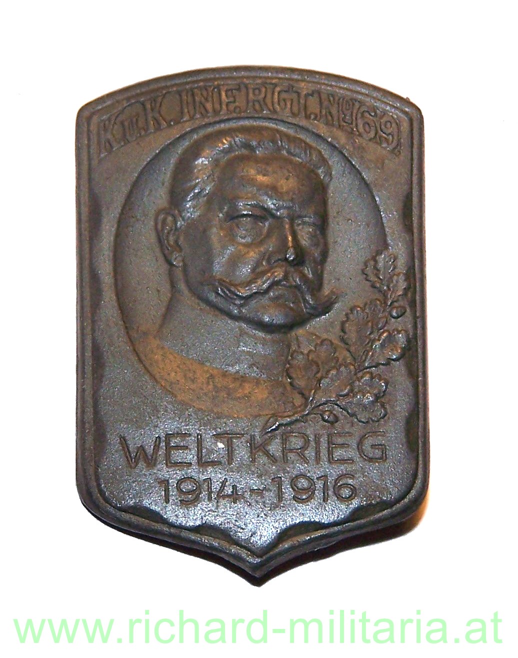 k.u.k. Kappenabzeichen Inf. Rgt. No. 69. (Hindenburg Regiment) / Weltkrieg 1914-1916