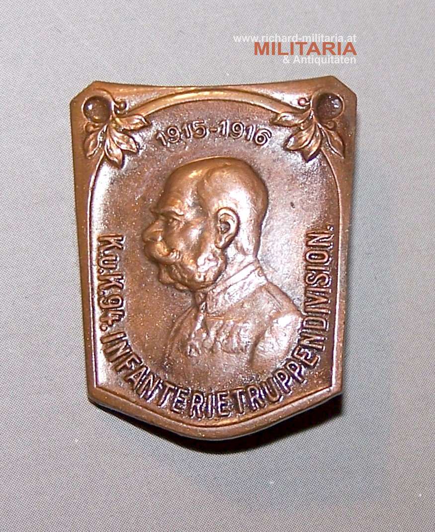 k.u.k. Kappenabzeichen - Infanterietruppendivision 94 1915-1916; Bronze massiv; mit originalem Nadelsystem;