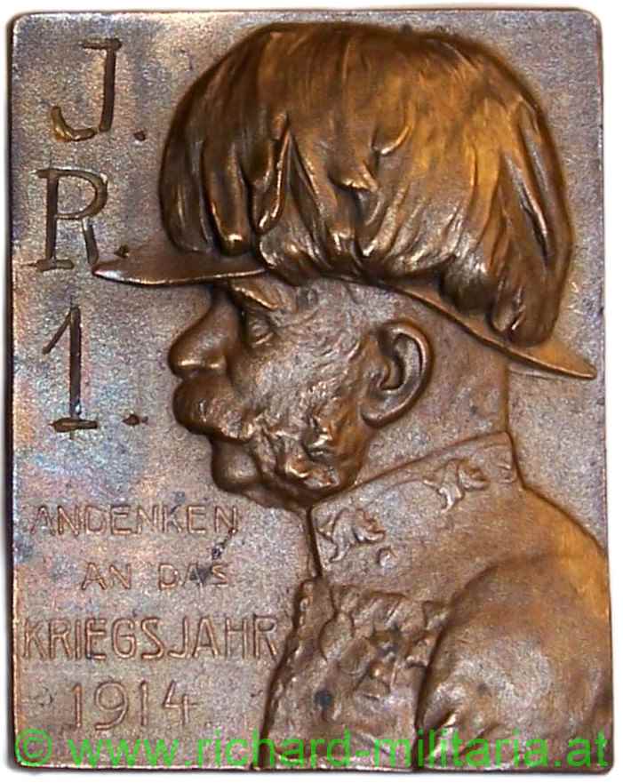 k.u.k. Kappenabzeichen IR 1 - Andenken an das Kriegsjahr 1914 - FJ (gravierte Variante)