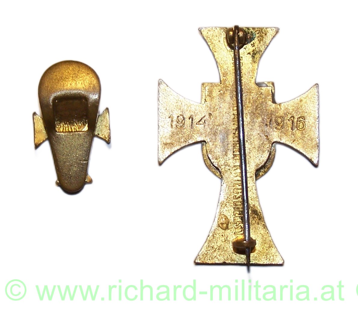 k.u.k. Kappenabzeichen IR49 Hessen Kreuz mit Miniatur; Erinnerung an meinem Kriegsdienst 1914-1916, schönes Set; guter Zustand mit originaler Nadel