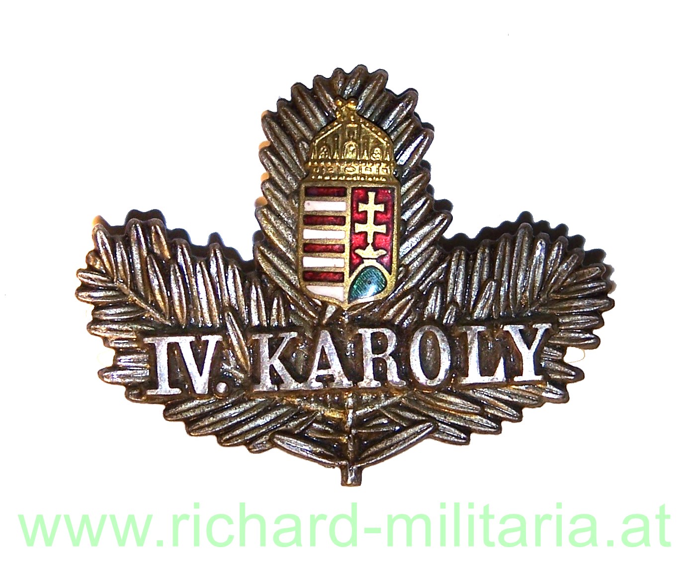 Produktinformationen "k.u.k. Kappenabzeichen IV. Károly Tannenzweig mit Wappen"