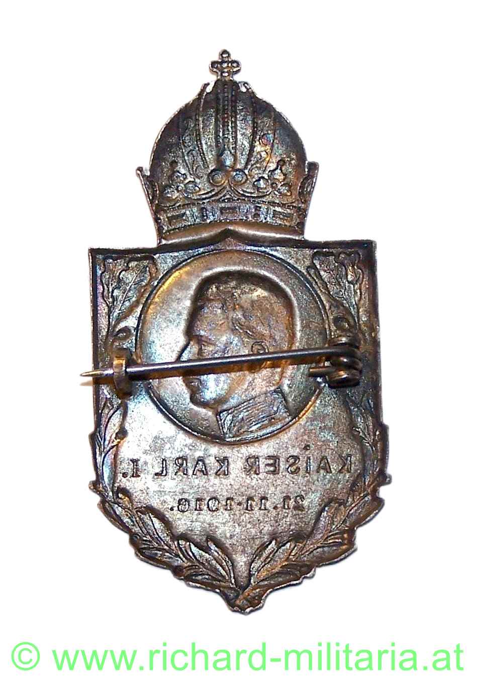 k.u.k. Kappenabzeichen Kaiser Karl I. / 21.11.1916;