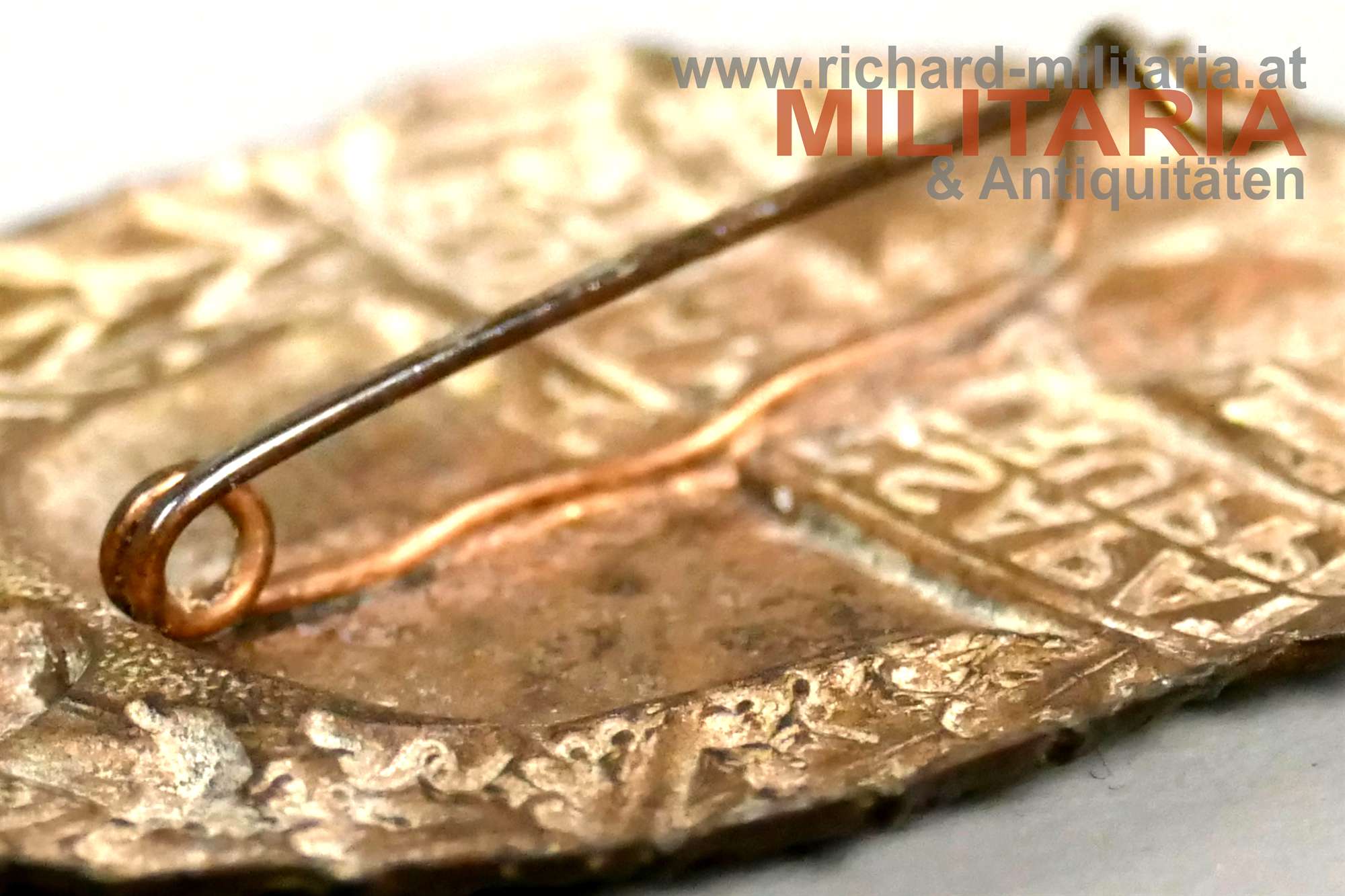 k.u.k. Kappenabzeichen Roham Csapat - Sturm-Truppe; Zinkblech bronziert; Bronzierung noch großteils vorhanden (!); mit originalem Nadelsystem;