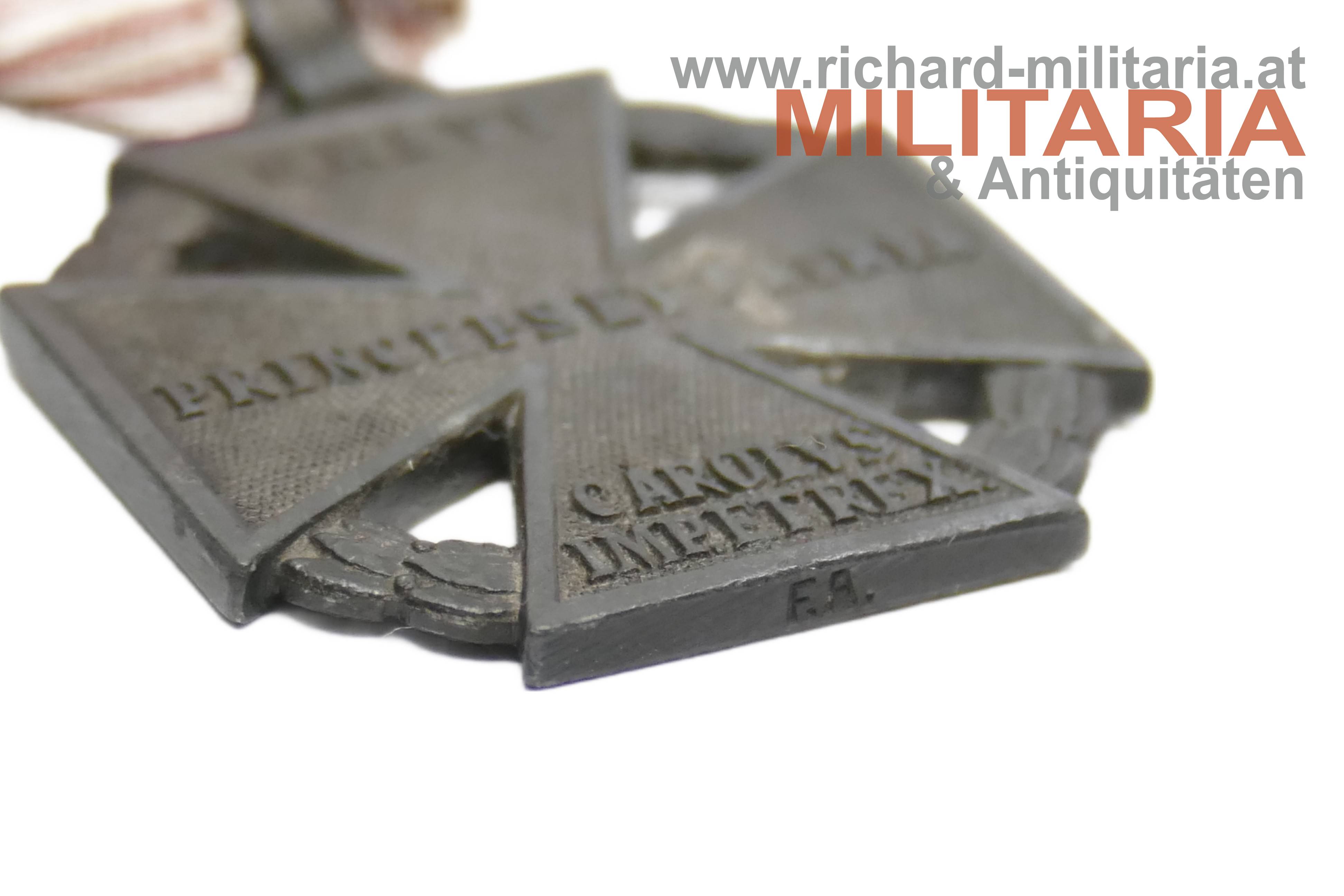k.u.k. Karl-Truppenkreuz "F.A."; Kriegmetall mit Randpunzierung "F.A."; am originalen Band;