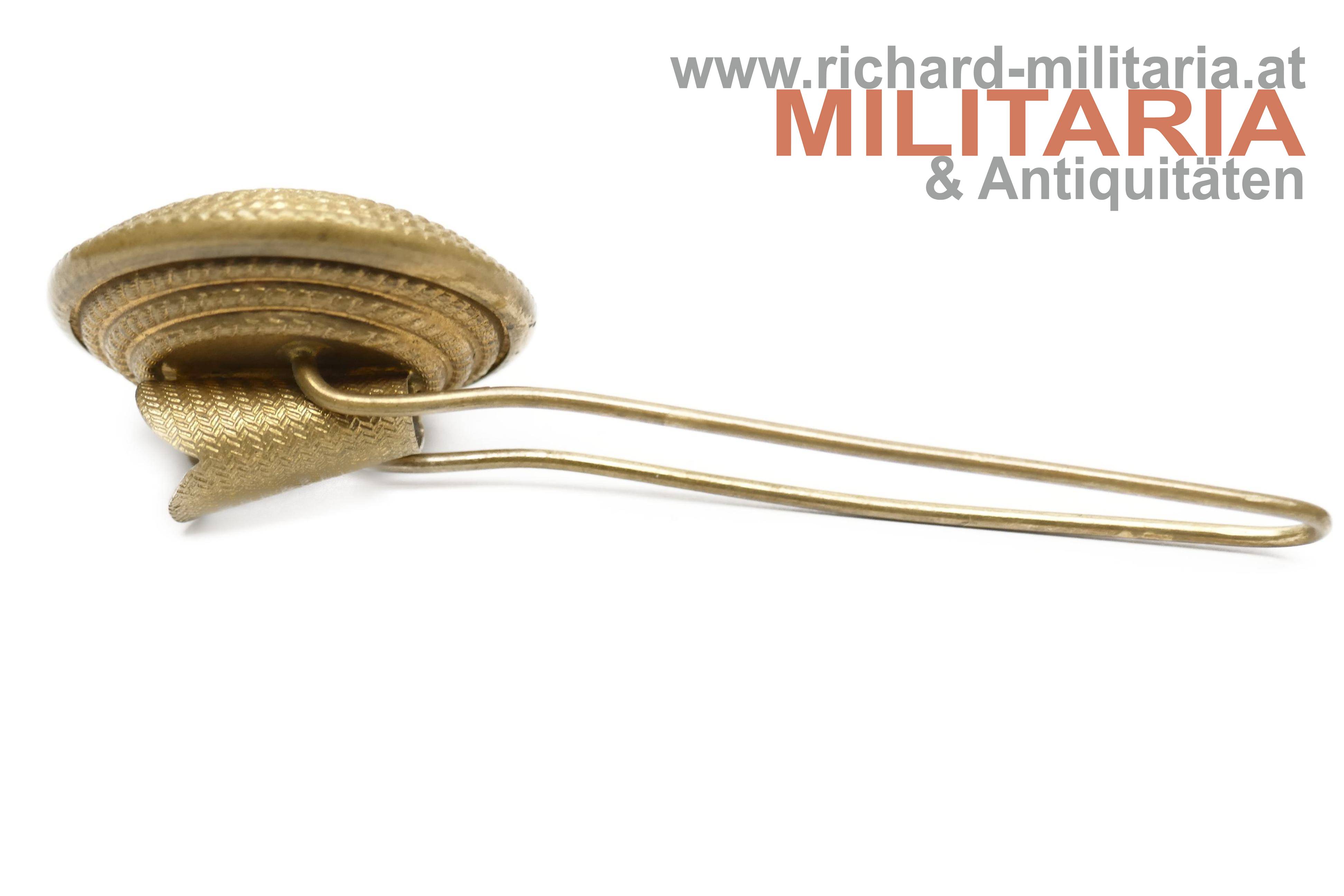 k.u.k. Kokarde für den Husaren-Tschako - FJ1; Tombak vergoldet; geriffelte Variante; revers die Tülle für den Rosshaarbusch; Vergoldung sehr gut erhalten;