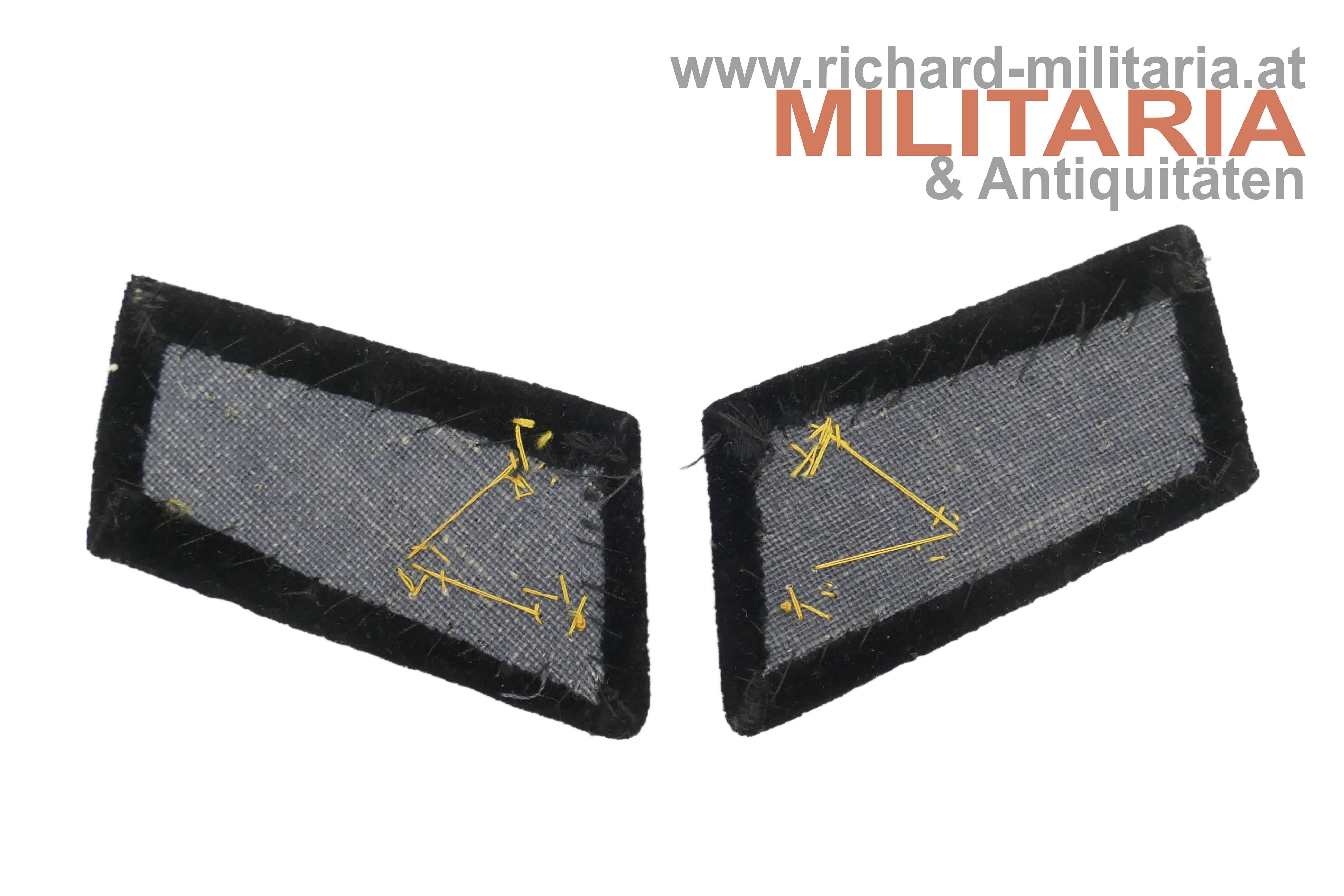 k.u.k. Paar zusammengehörige Kragenspiegel für einen Hauptmann im k.u.k. Infanterie-Regiment Nr. 14 oder 26; schwarzer Samt mit je 3 goldenen Offiziers-Distinktionssternen;