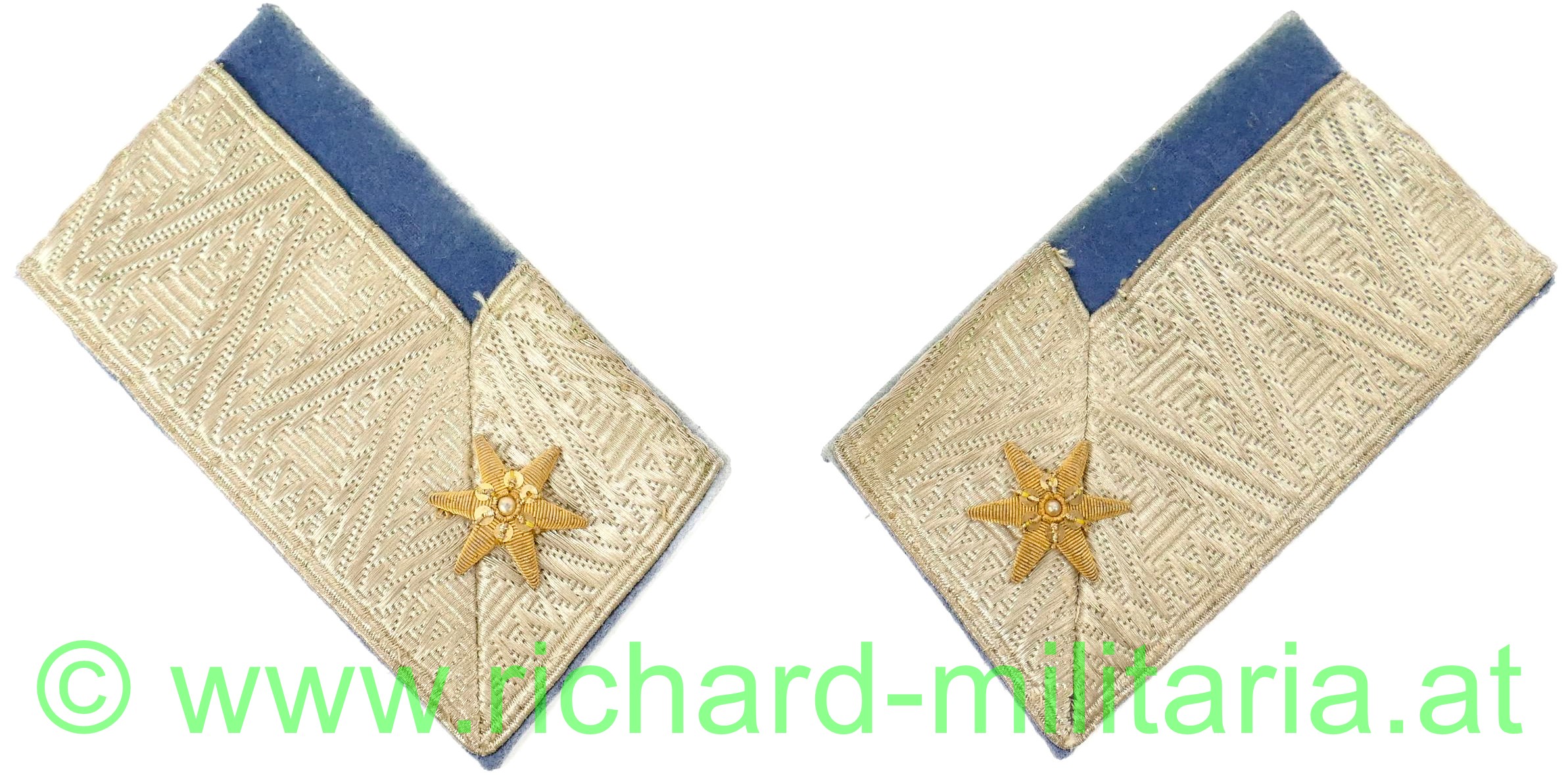 k.u.k. Kragenspiegel - Major IR Nr. 3/75 od. 19/29, blaues (himmelblau od. lichtblau) Grundtuch mit silberner breiter Borte mit vernähtem goldenen Rangstern,