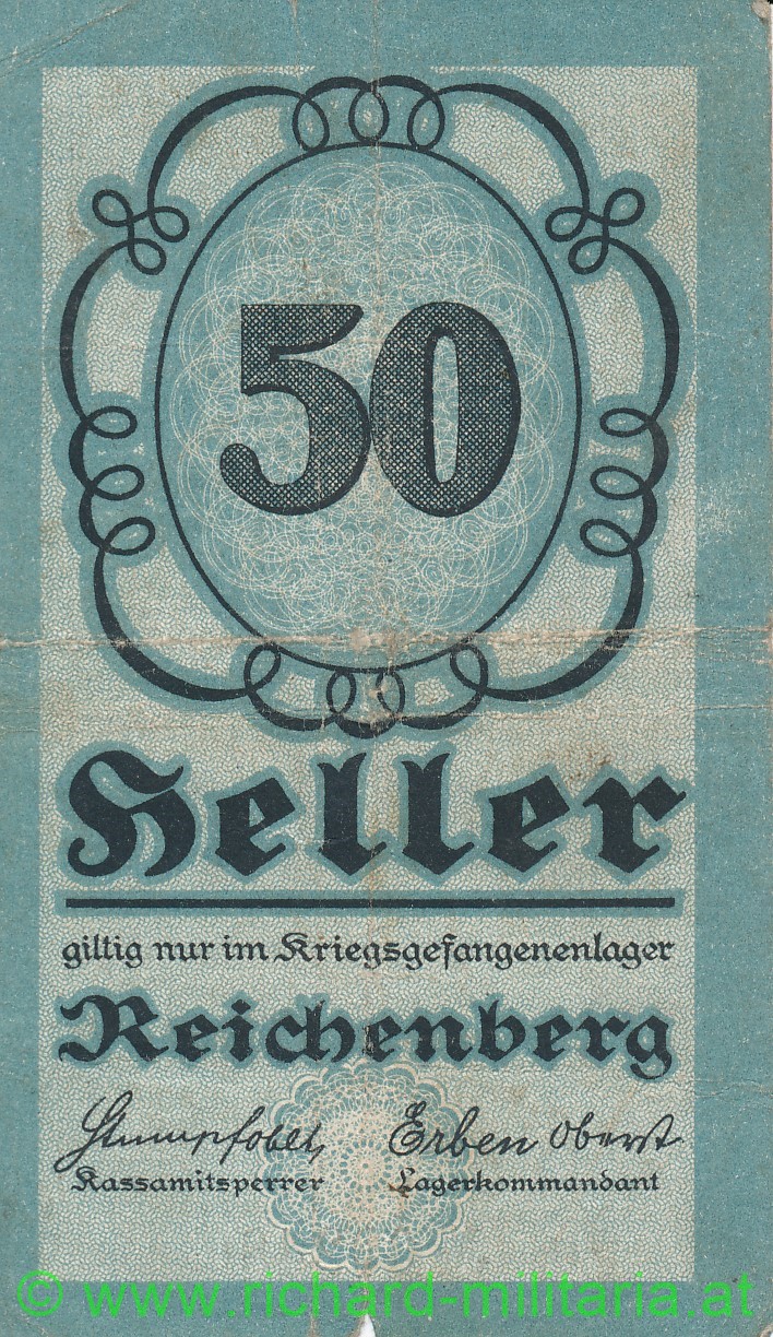 k.u.k. Kriegsgefangenenlager Reichenberg, Lagergeld - 50 Heller, guter Zustand