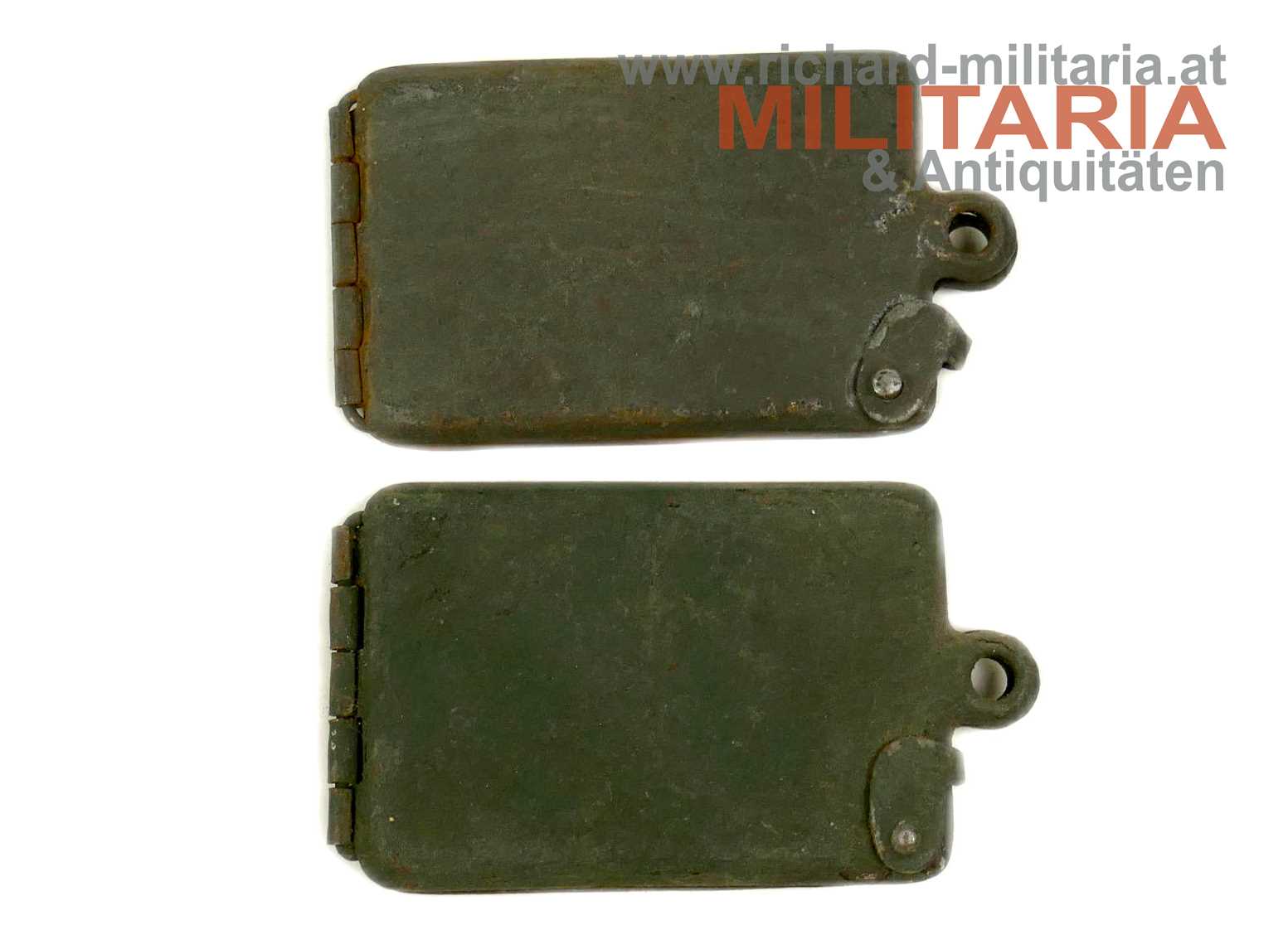 k.u.k. Legitimationskapseln - Metall feldgrau lackiert; mit Verschlussbügel - diese schwergängig (!);