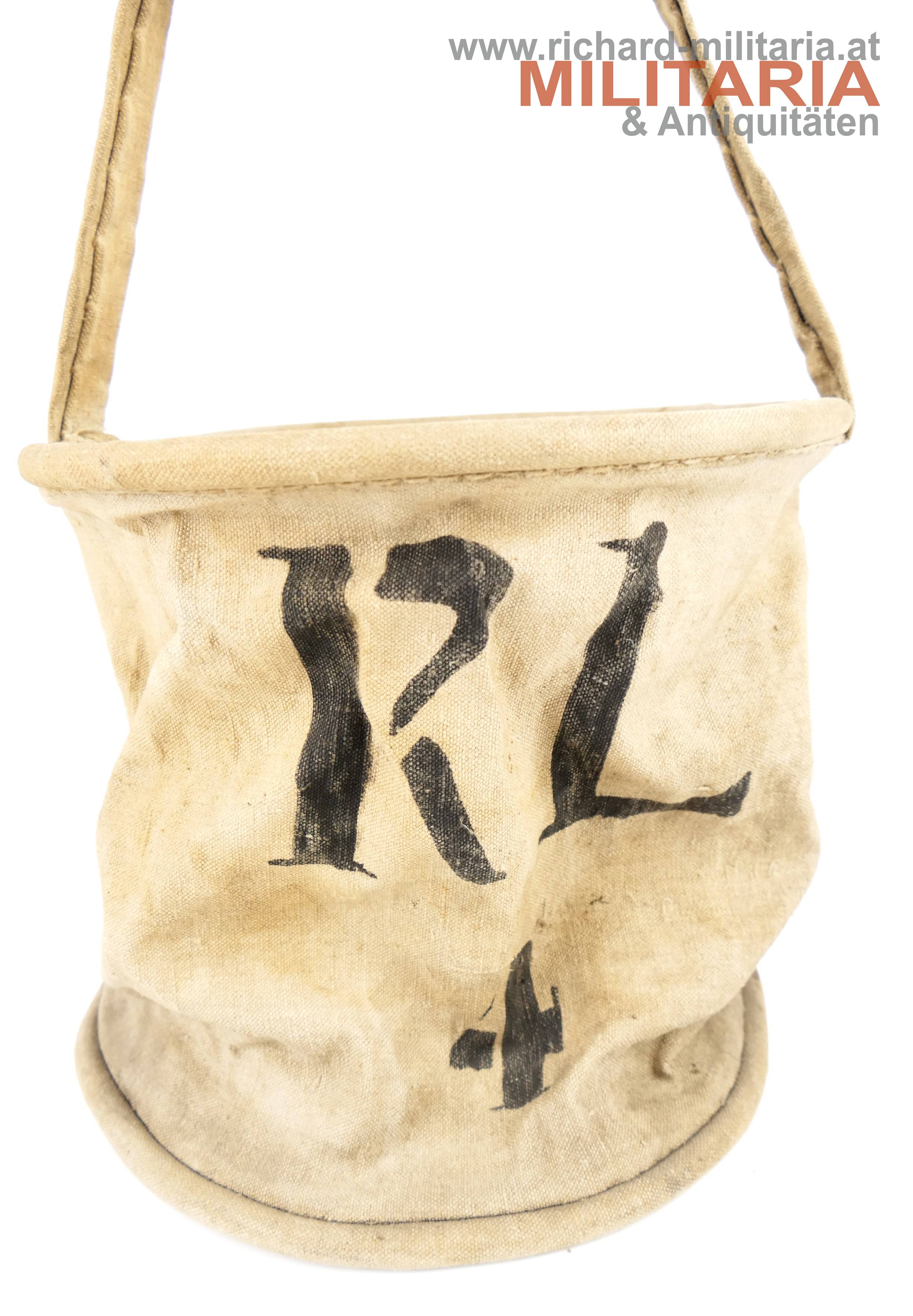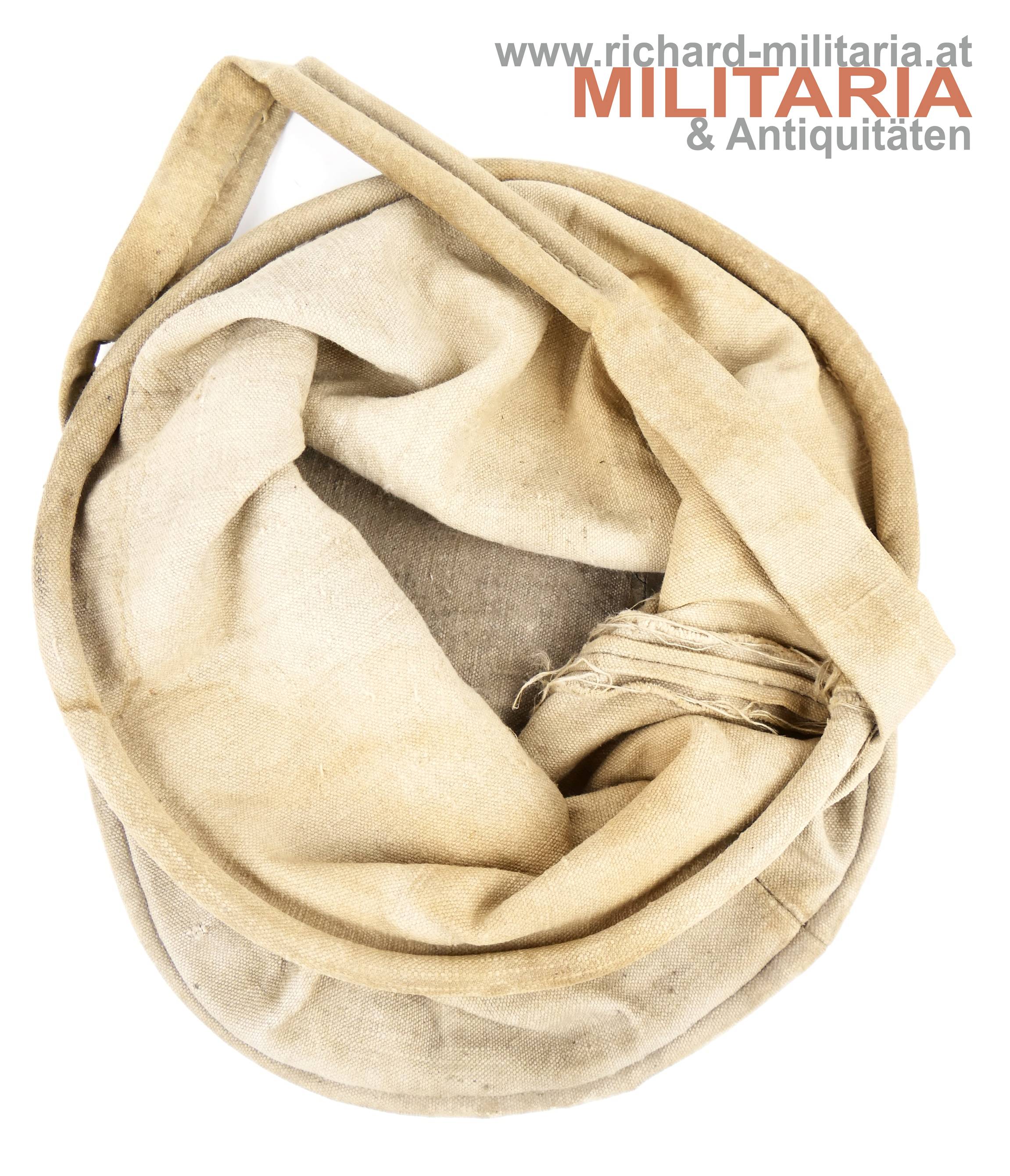 Futtersack für Pferde der k.u.k. Armee - Leinenbeutel gestempelt "R.L. 4" mit Trageriemen; Riemen und Ränder mit Ringen verstärkt;