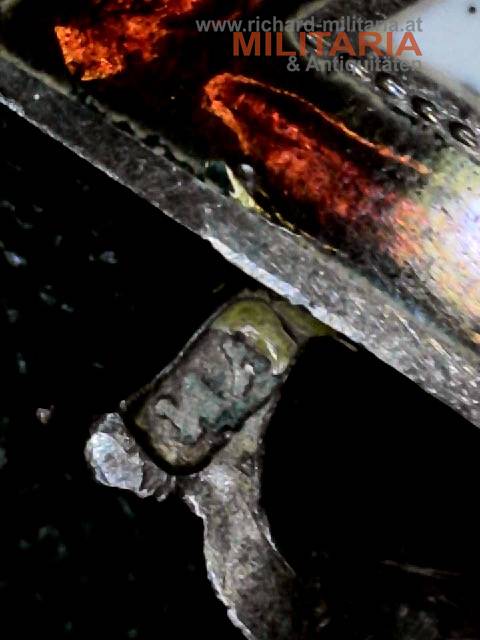 k.u.k. Militärverdienstkreuz 3. Klasse mit Kriegsdekoration und Schwertern; Silber emailliert; Dianakopfpunze und vermutlich die Herstellerpunzierung "VM" (siehe Fotos); Bandring mit Kontrollamtspunze "A"; Emaillierung einwandfrei; am originalen Band mit aufgesplinteten Schwertern;