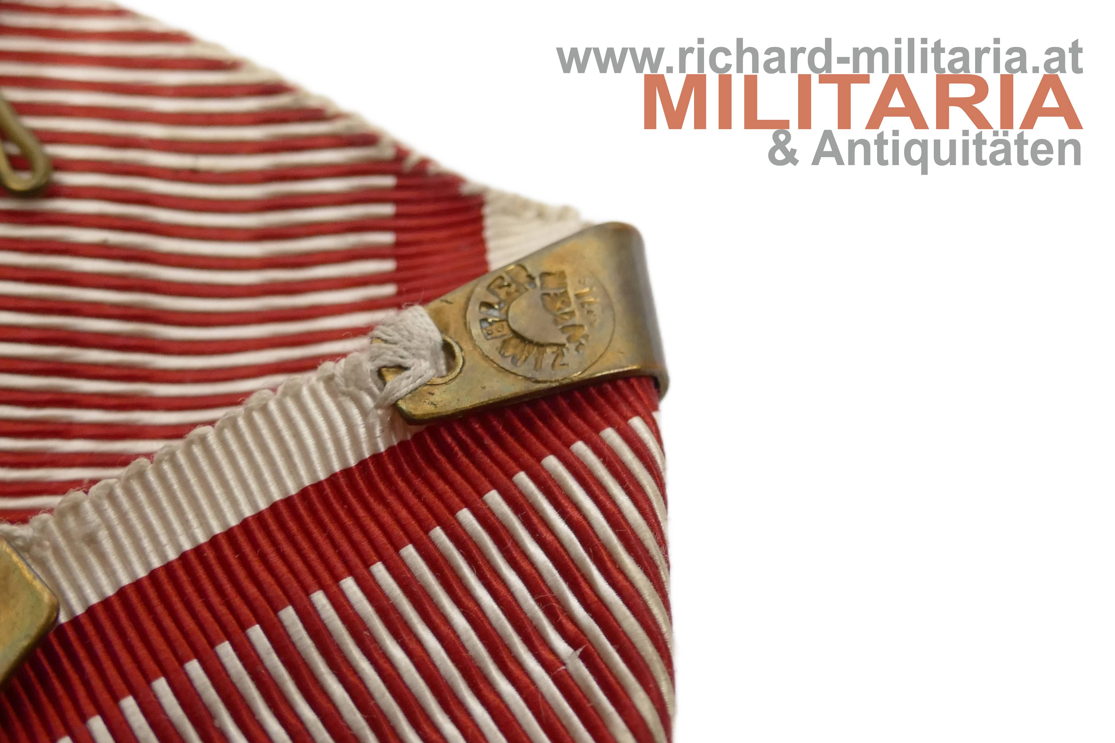 k.u.k. Militärverdienstkreuz 3. Klasse mit Kriegsdekoration und Wiederholungsspange; Silber emailliert; Herstellerpunze "AEK" (Köchert) und Silberpunzierung an der Öse; minimale Tragespuren in der Emaillierung; am originalen Band mit zeitgenössisch vernähter Wiederholungsspange; diese gestempelt mit "Zimbler Wien";